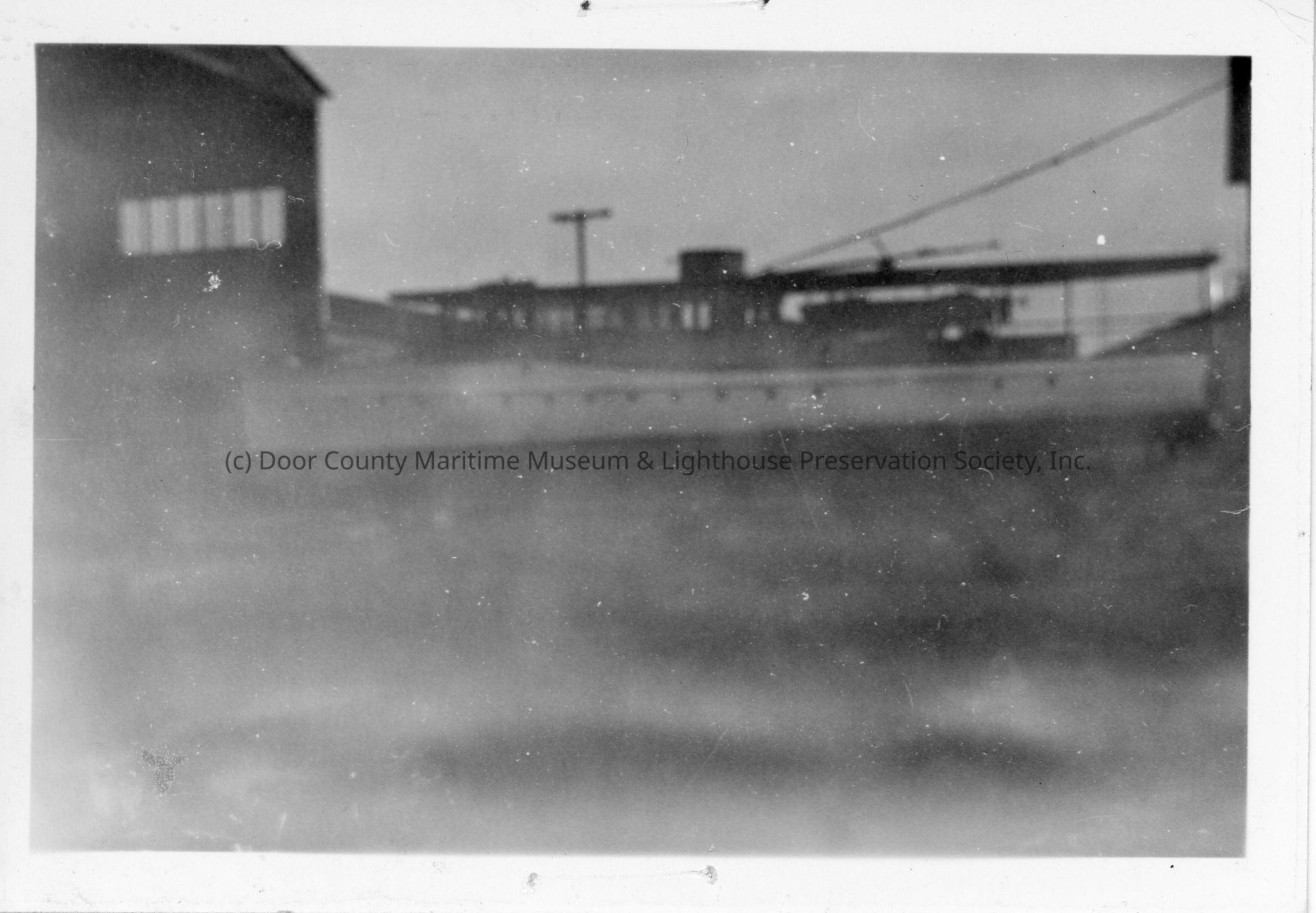 Foggy picture of vessel with 14 ports holes visible
