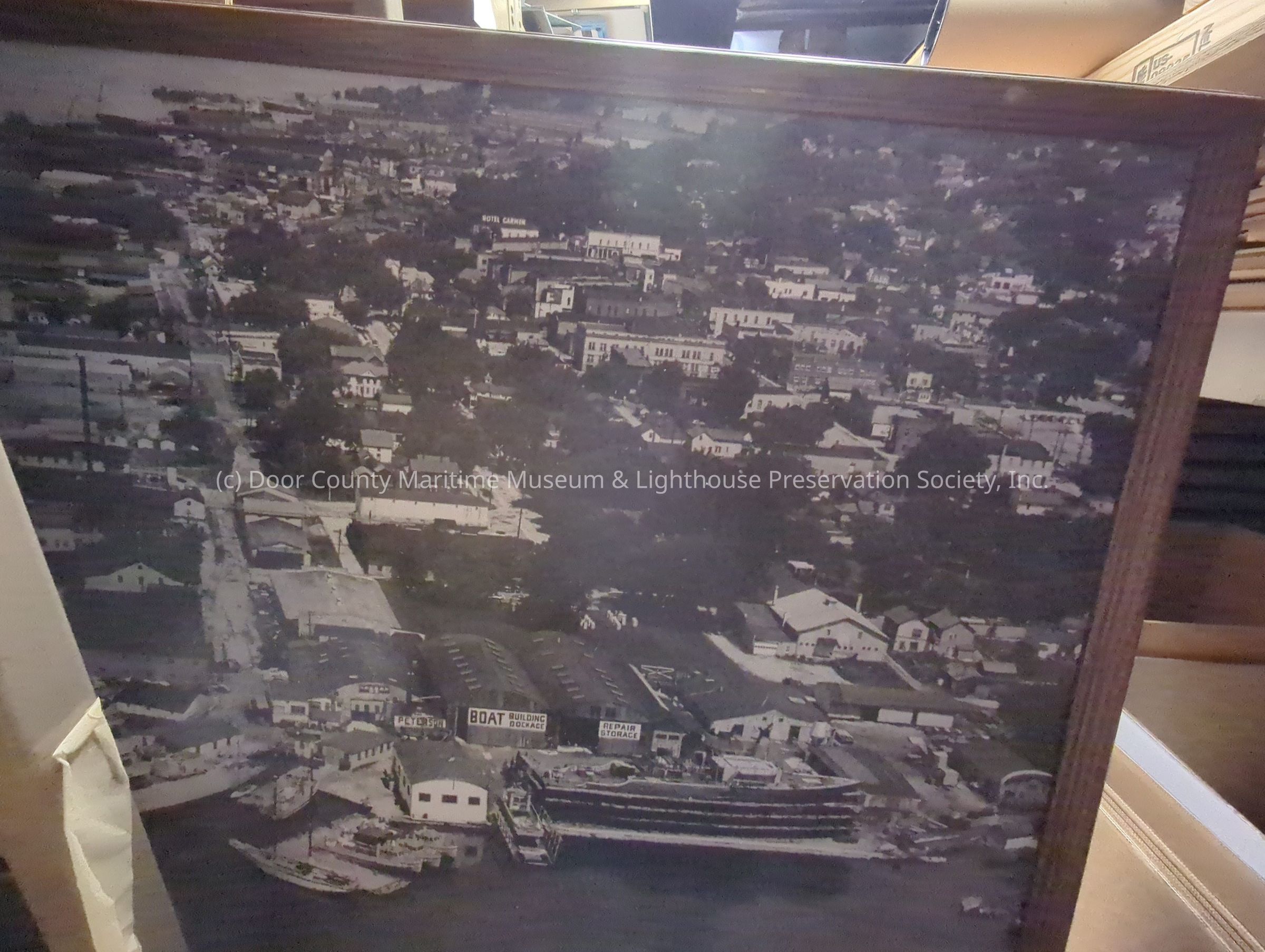 Framed photograph of an aerial view of Peterson Builders Inc. 1953
