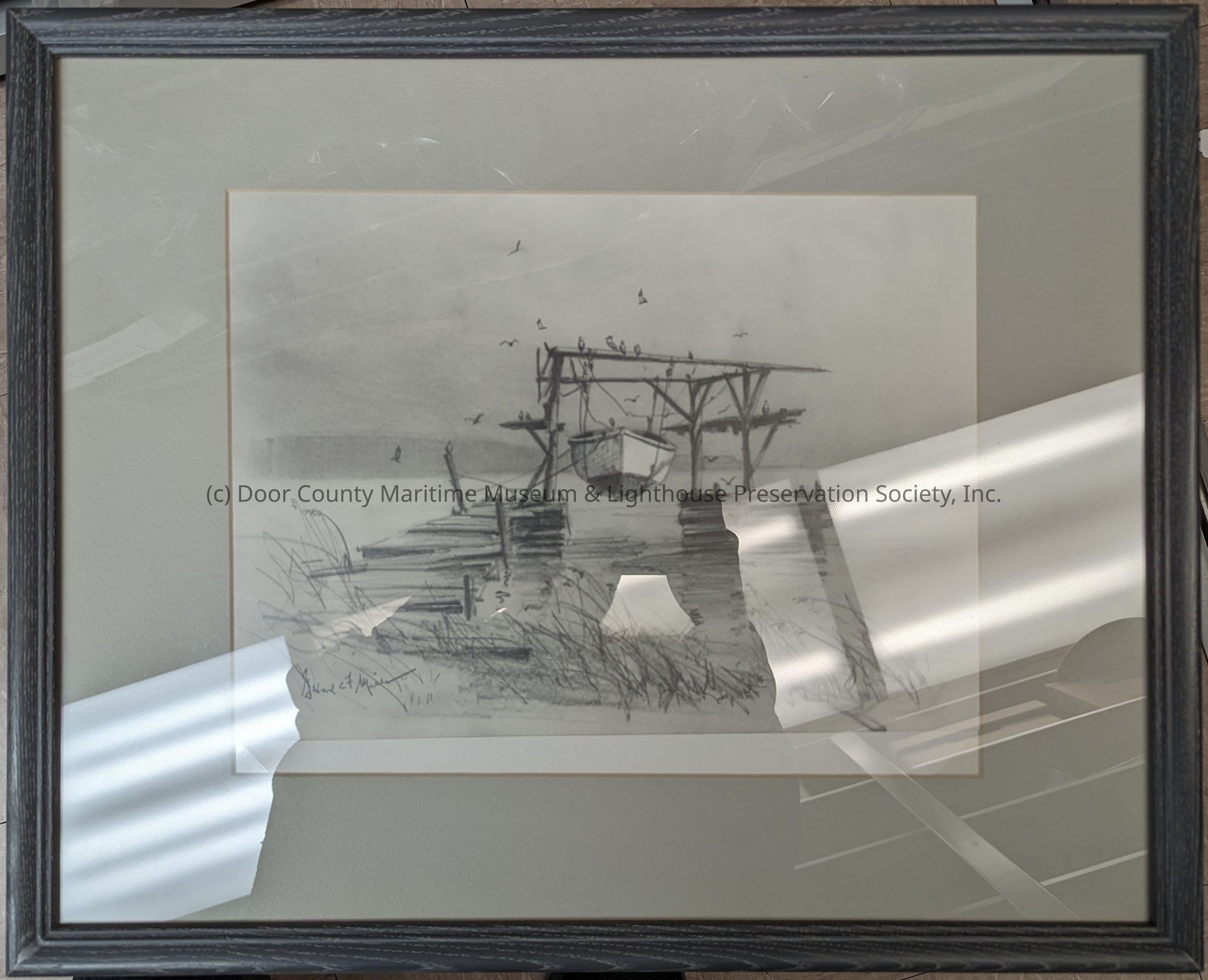 Framed drawing of a boat hoist