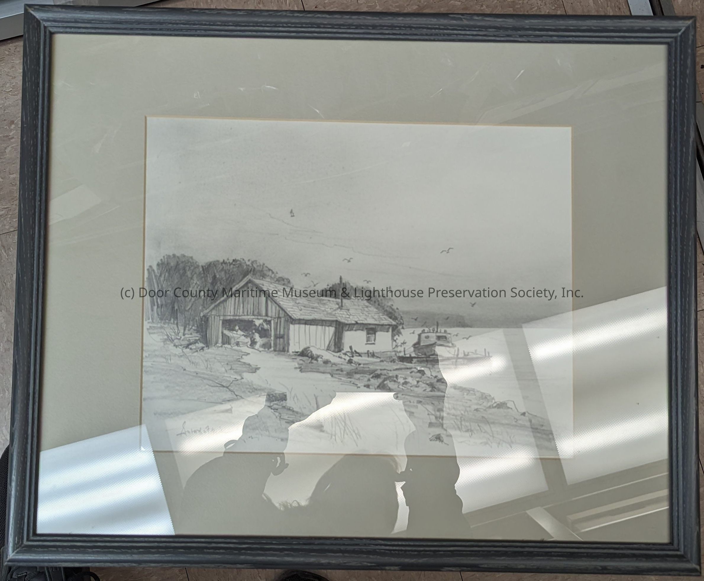 Framed drawing of the Old Anclam Fish Dock in Bailey's Harbor