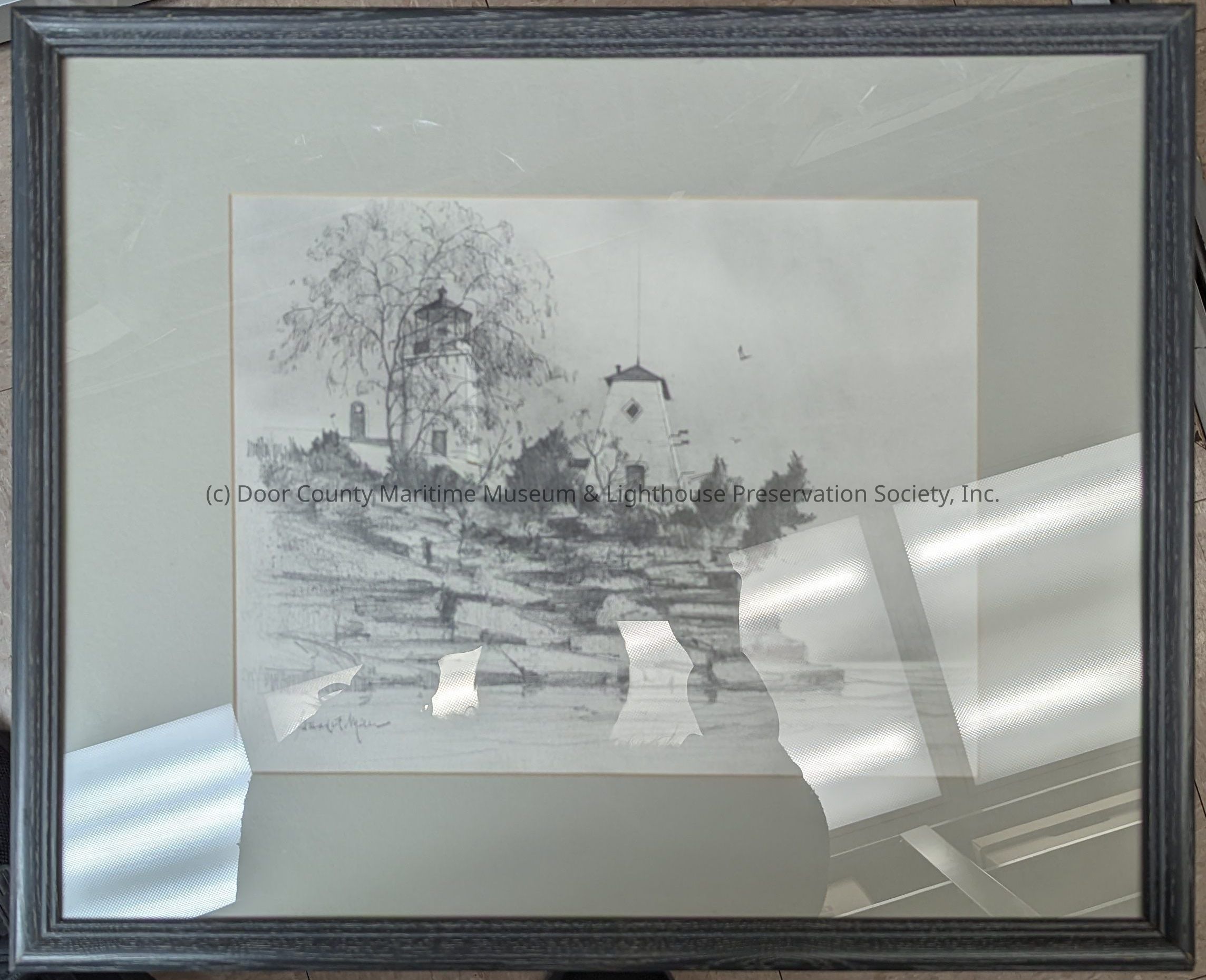Framed drawing of Sherwood Point Lighthouse