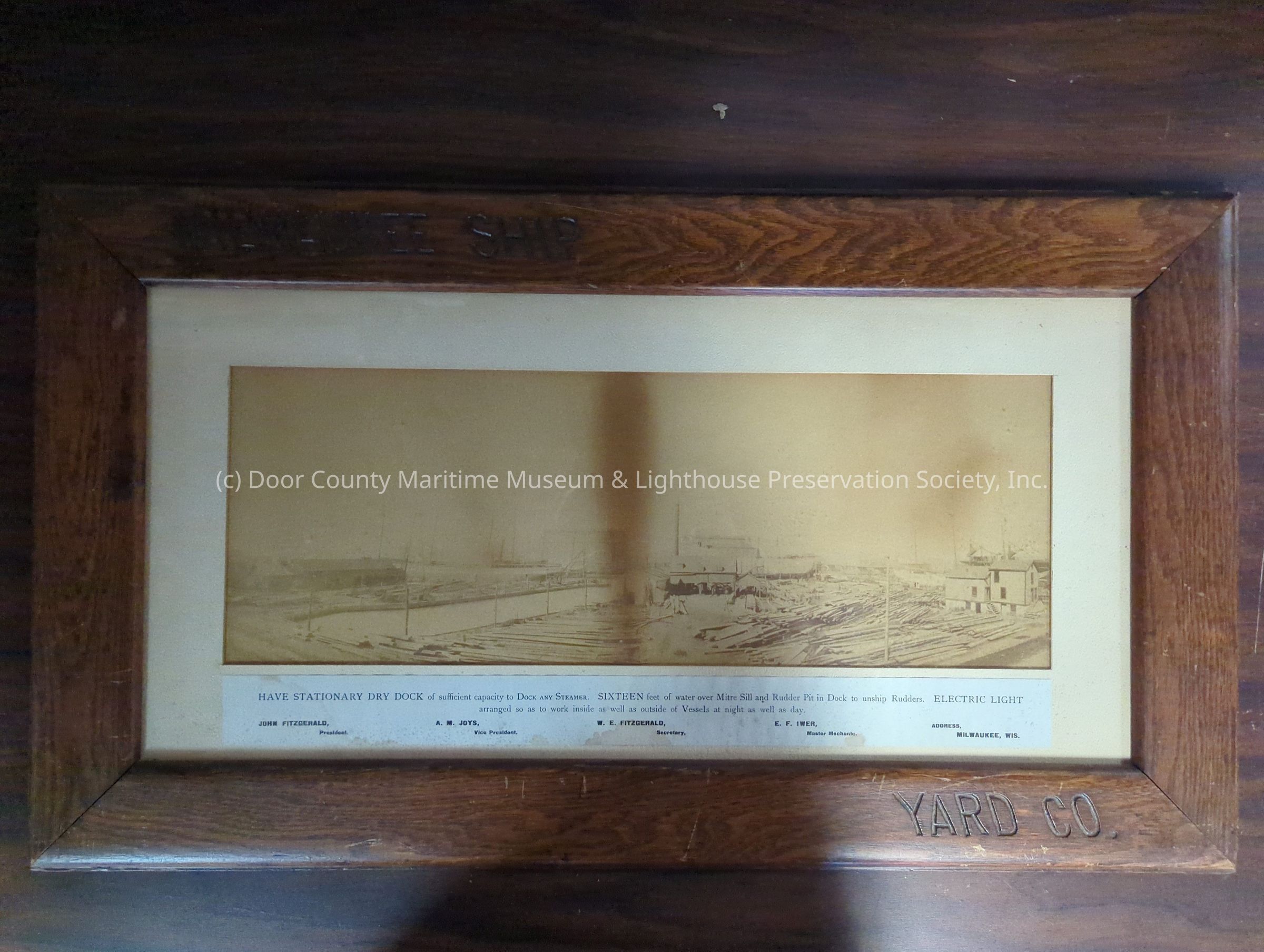 Framed photograph of the Milwaukee Ship Yard Co. "Milwaukee Ship Yard Co." engraved into the frameLocation