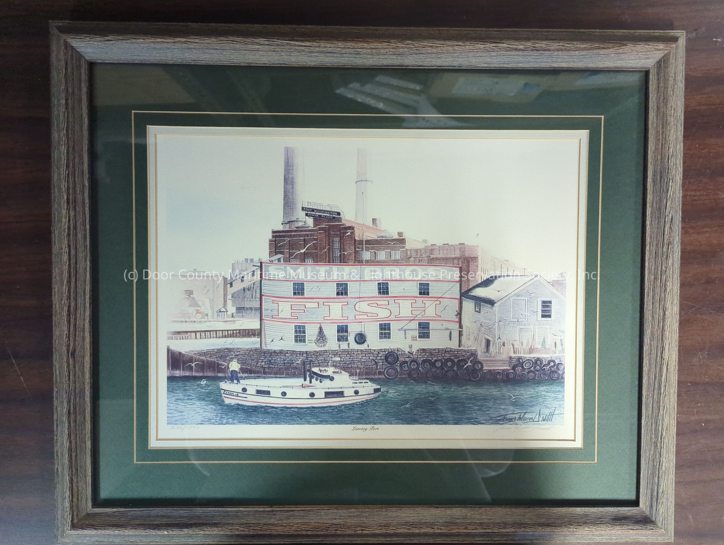 Framed print of Smith Bros. fish shanty with the fishing tug Linda E in front of the building