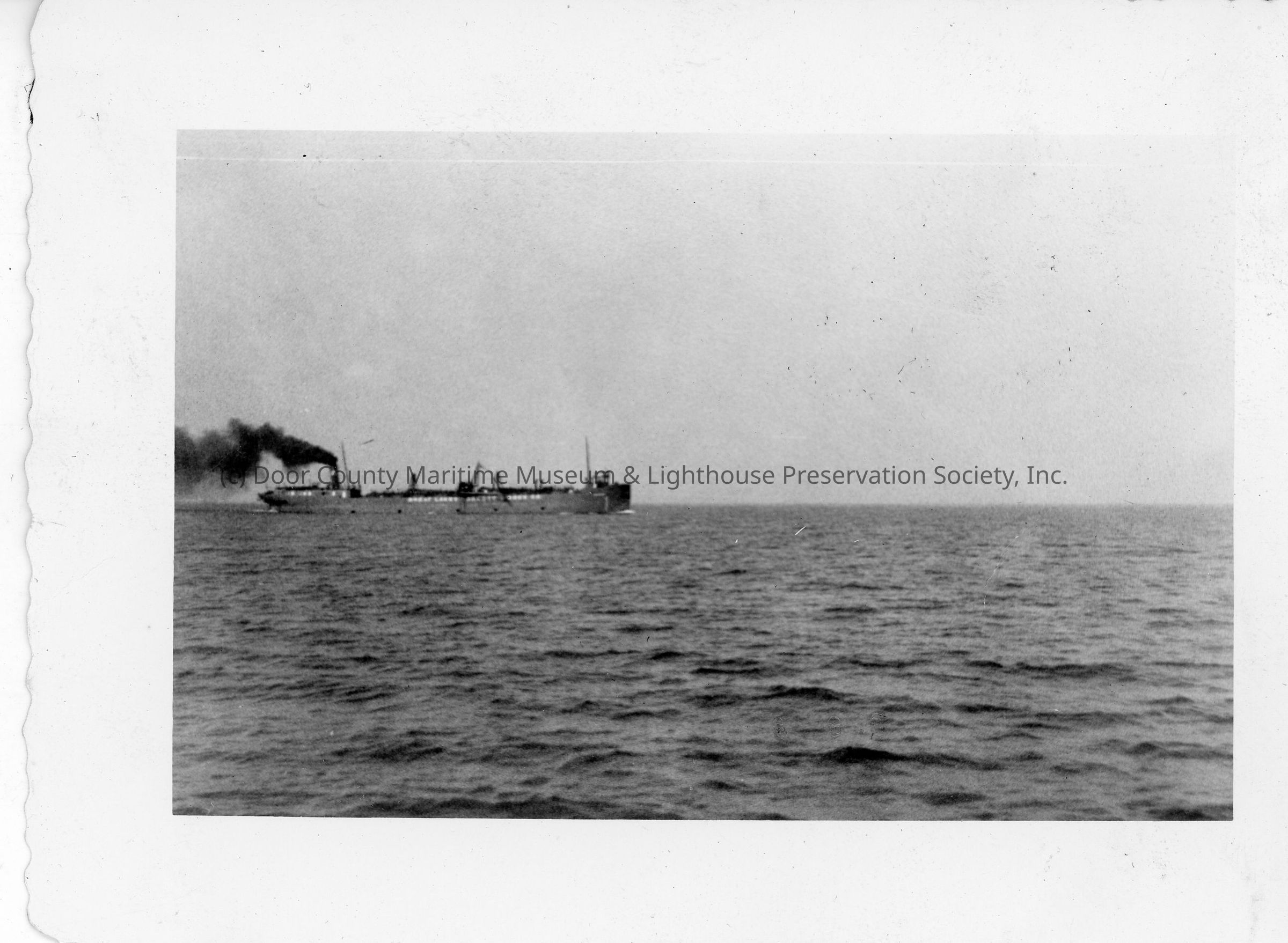Freighter underway in open water with smoke coming out of stack