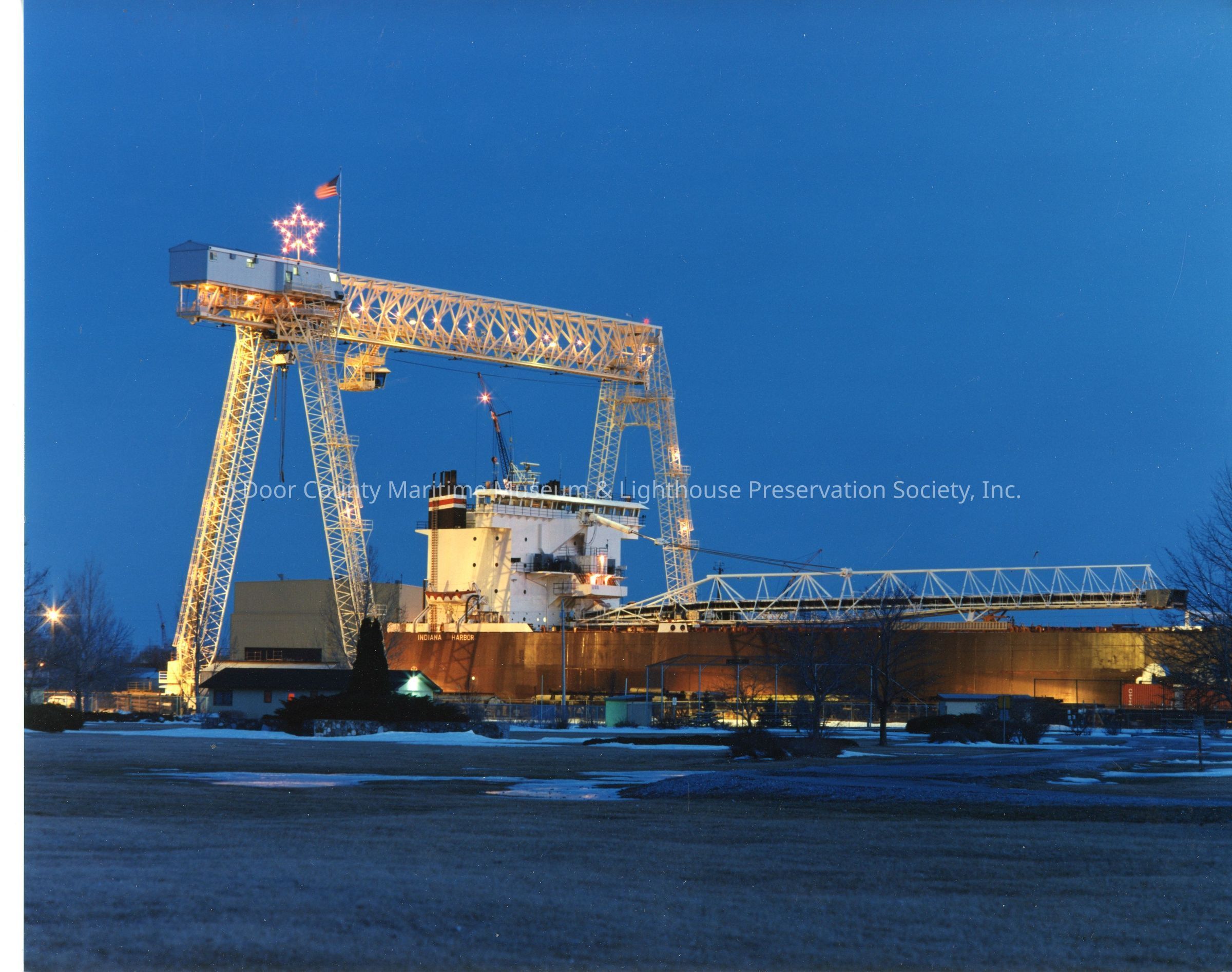Gantry crane at Bay Ship with vessel Indiana Harobr in background
