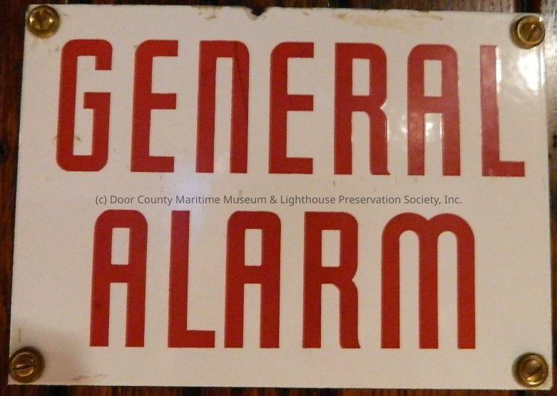 White metal sign with red print: GENERAL ALARM hole in each corner for mounting.