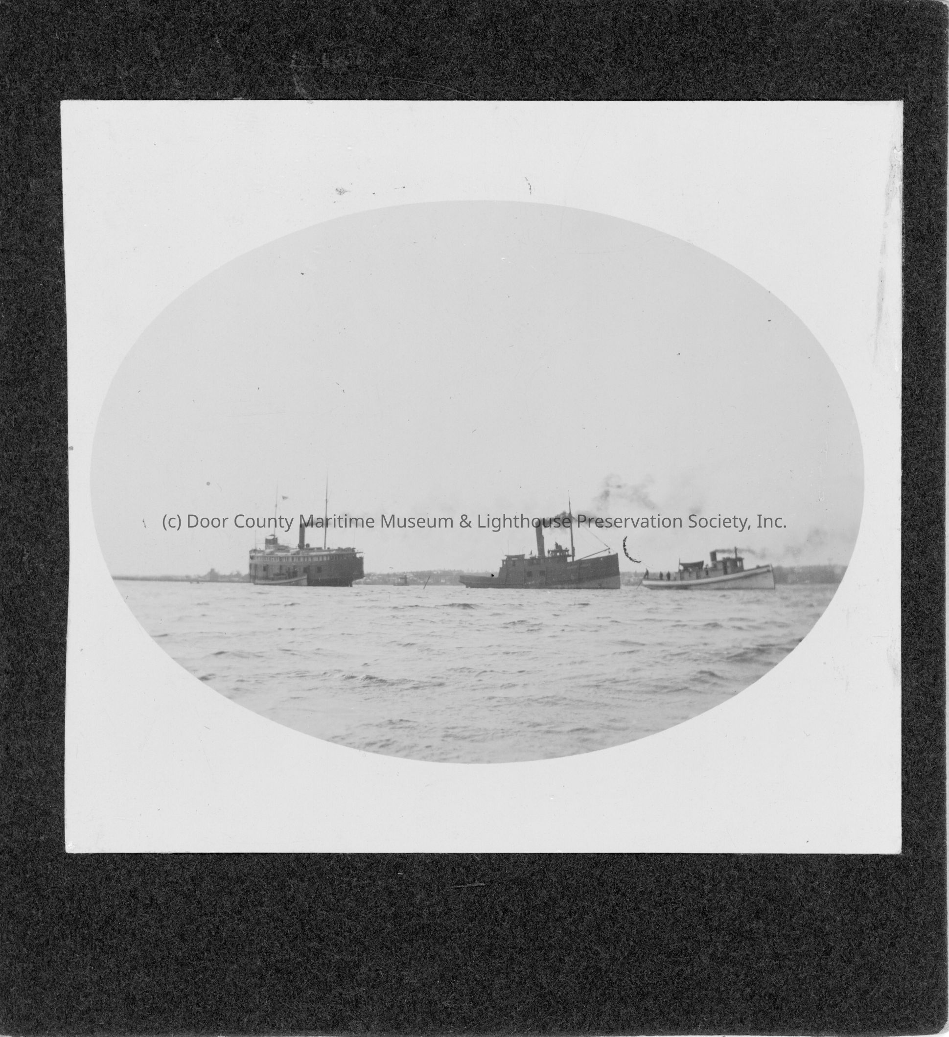 Goodrich Steamship Line steamer Carolina underway with two vessels in foreground