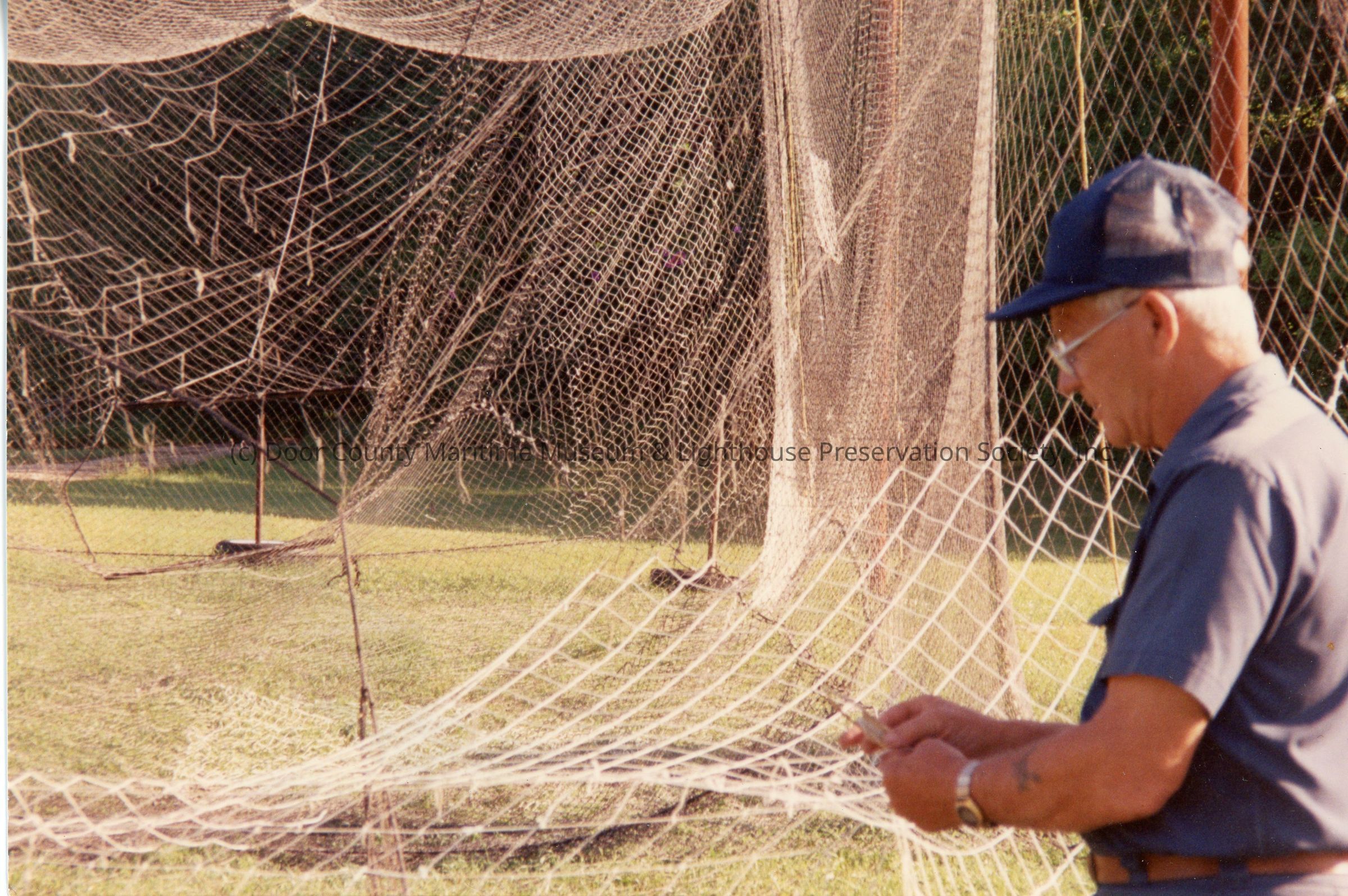 Gordon Weborg repairing trap net at Gills Rock