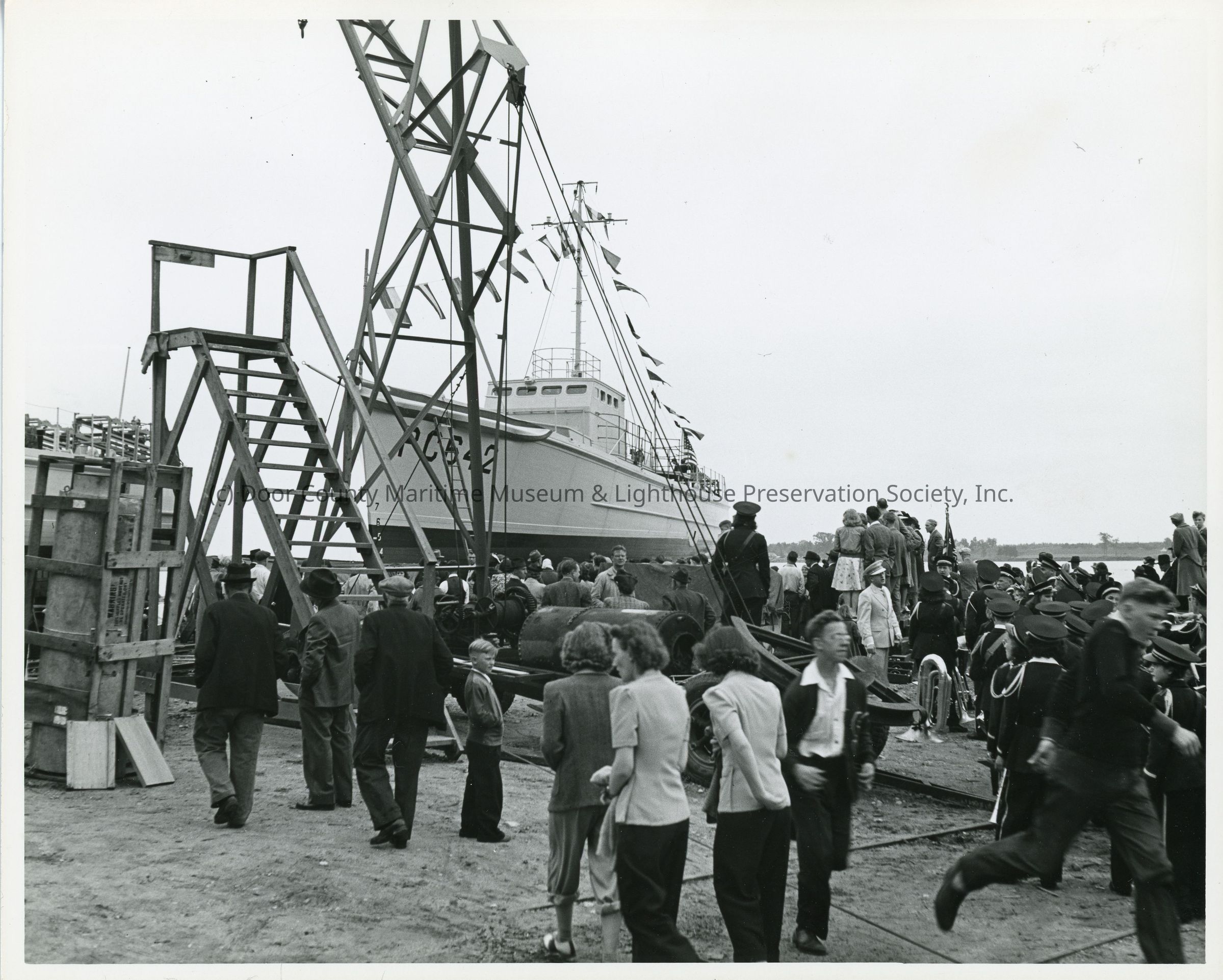 Group of people gathered for PC-642 christening at Peterson Boat Works May 30, 1942Entry/Object ID