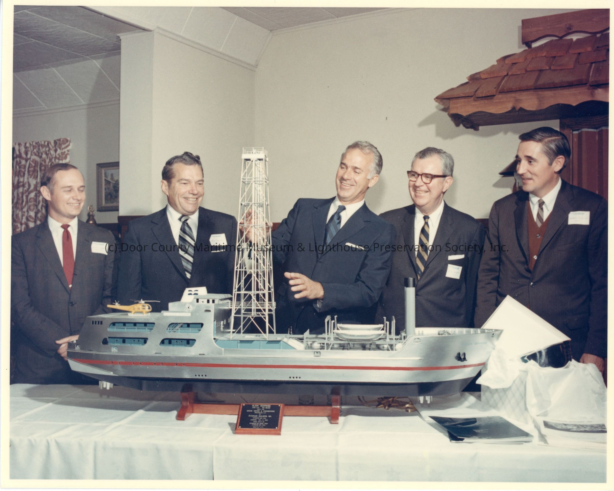 Group of people posing behind Alcoa Seaprobe modelEntry/Object ID