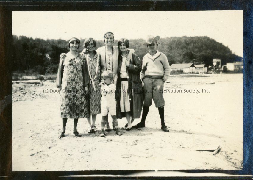 Group of six at Fish Creek beach 1925Entry/Object ID