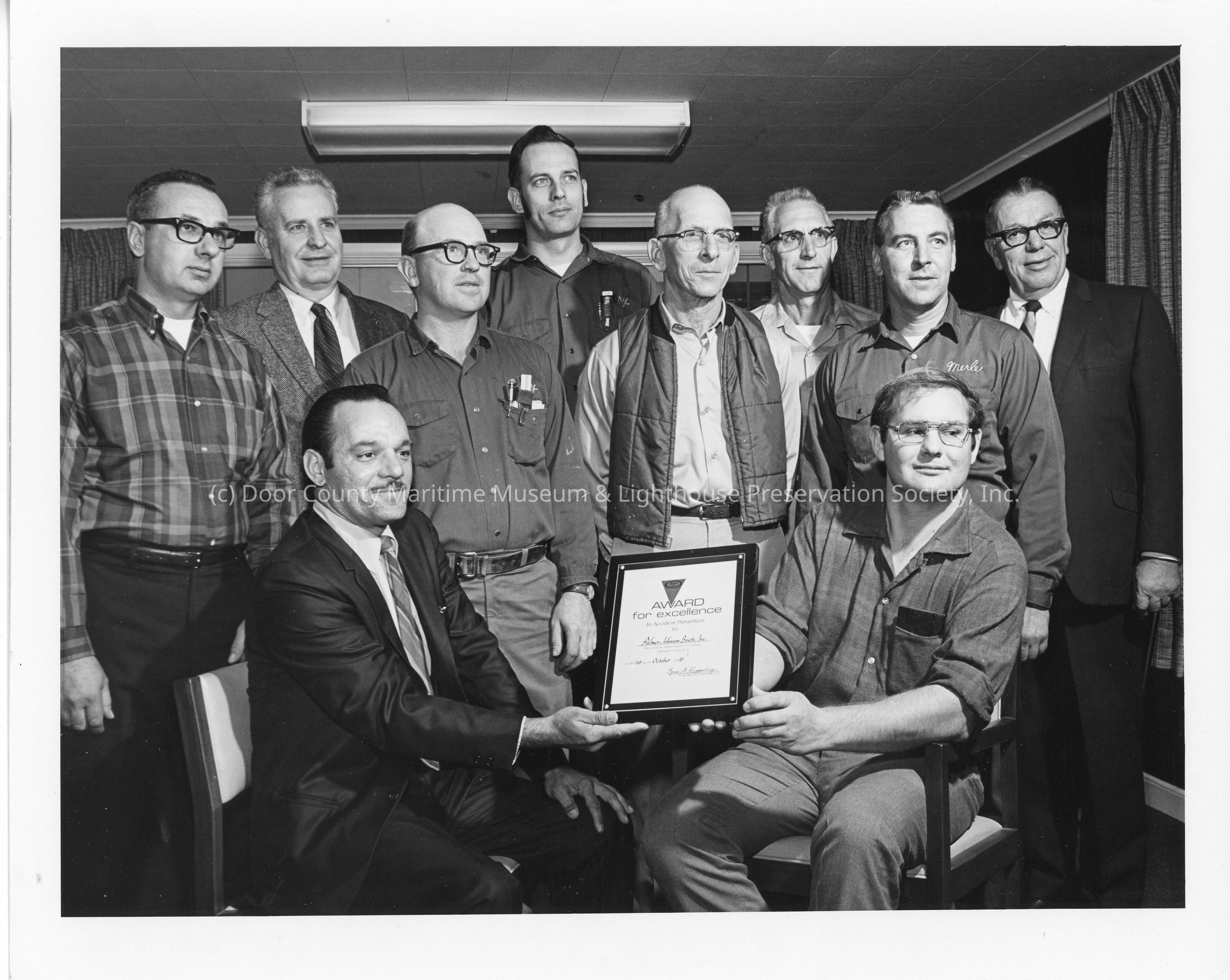 Group photo of Palmer Johnson employees receiving award of excellence 1970