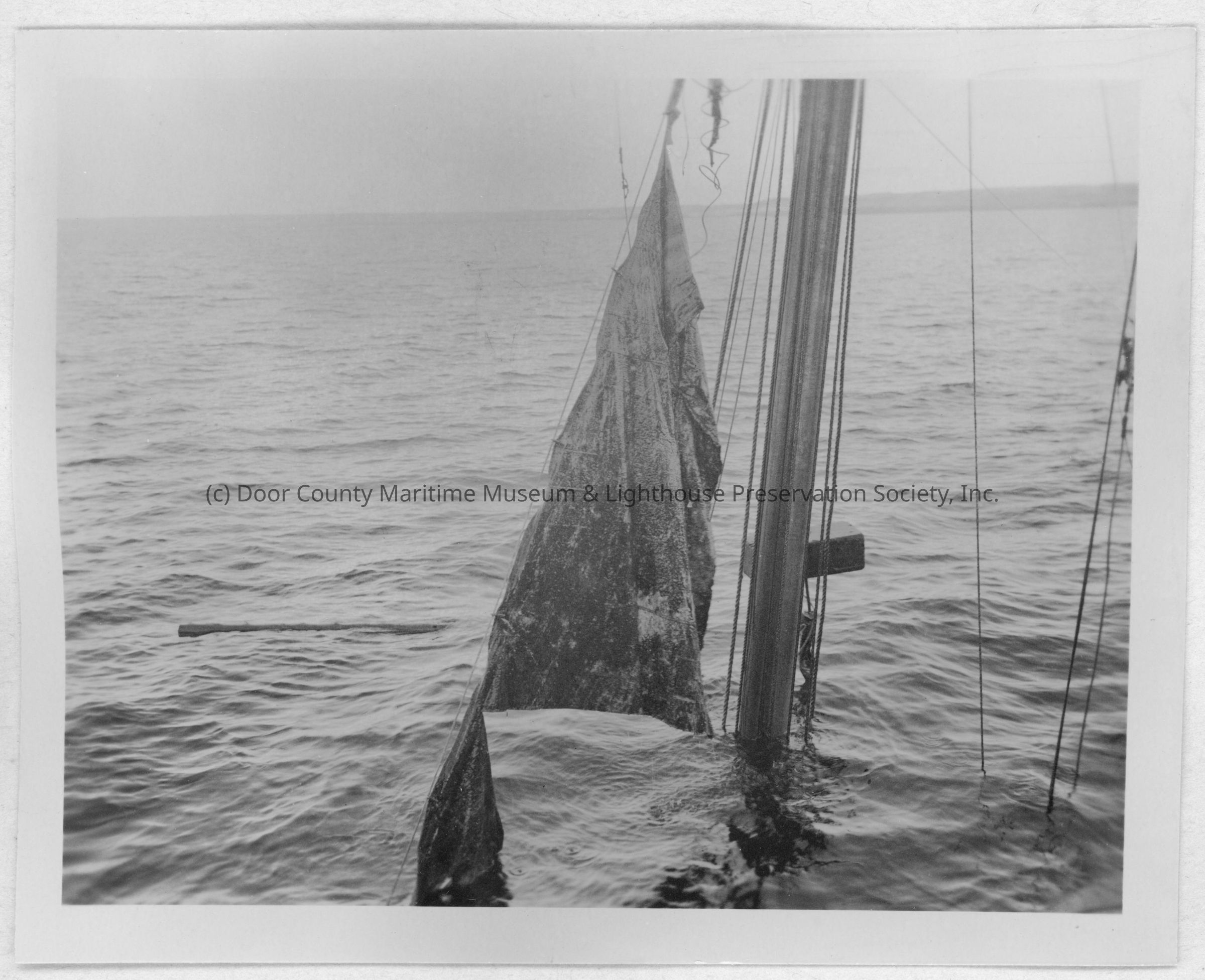 Half Moon being raised with mast and sails above water