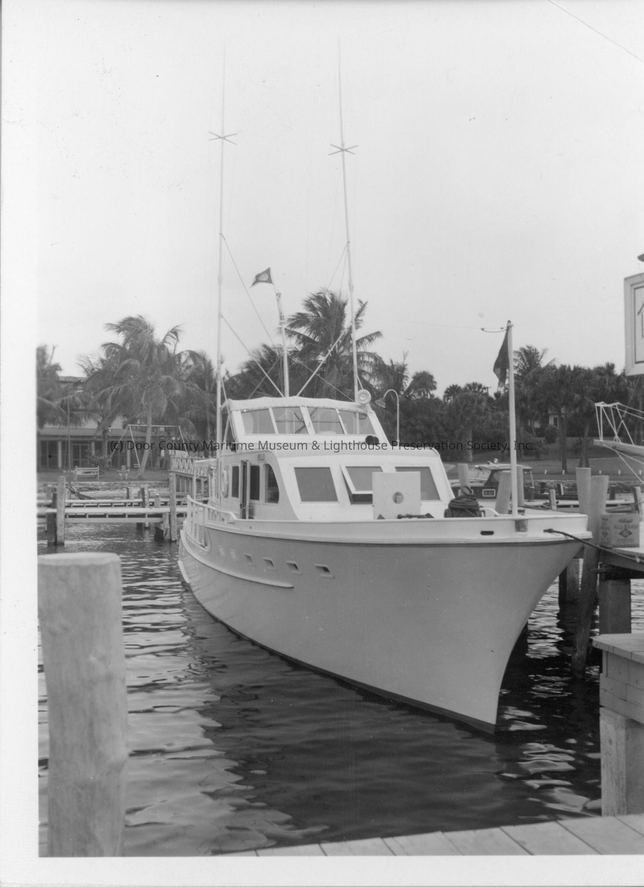 Hellu docked with palm trees in background