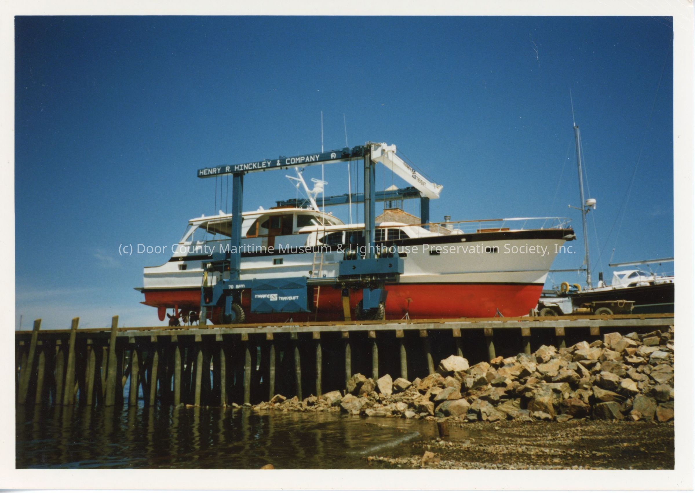 Henry R. Hinckley and Company Travelift holding yacht