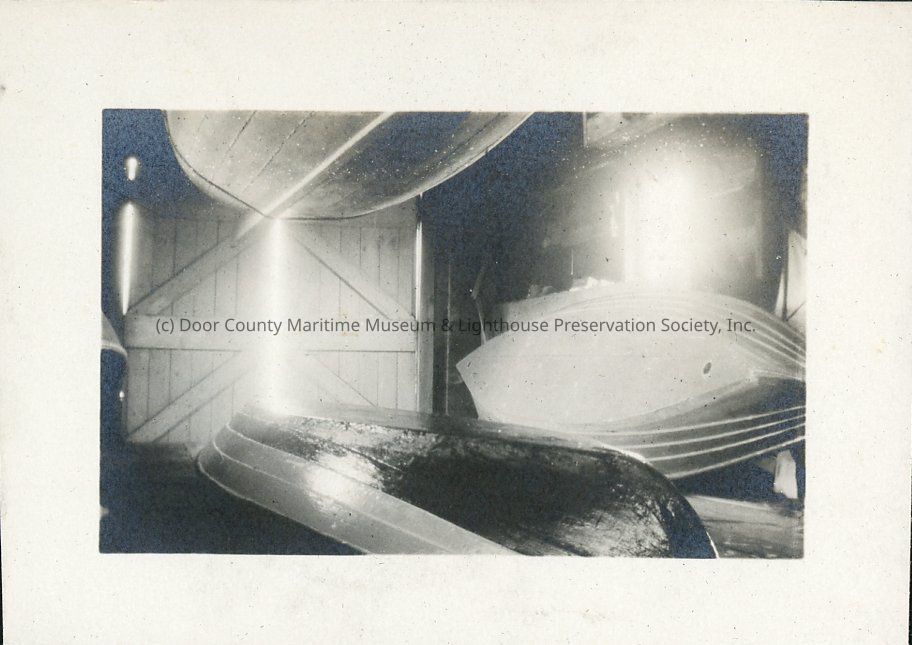 Inside the Hotz family boathouse at Fish Creek, May 1924