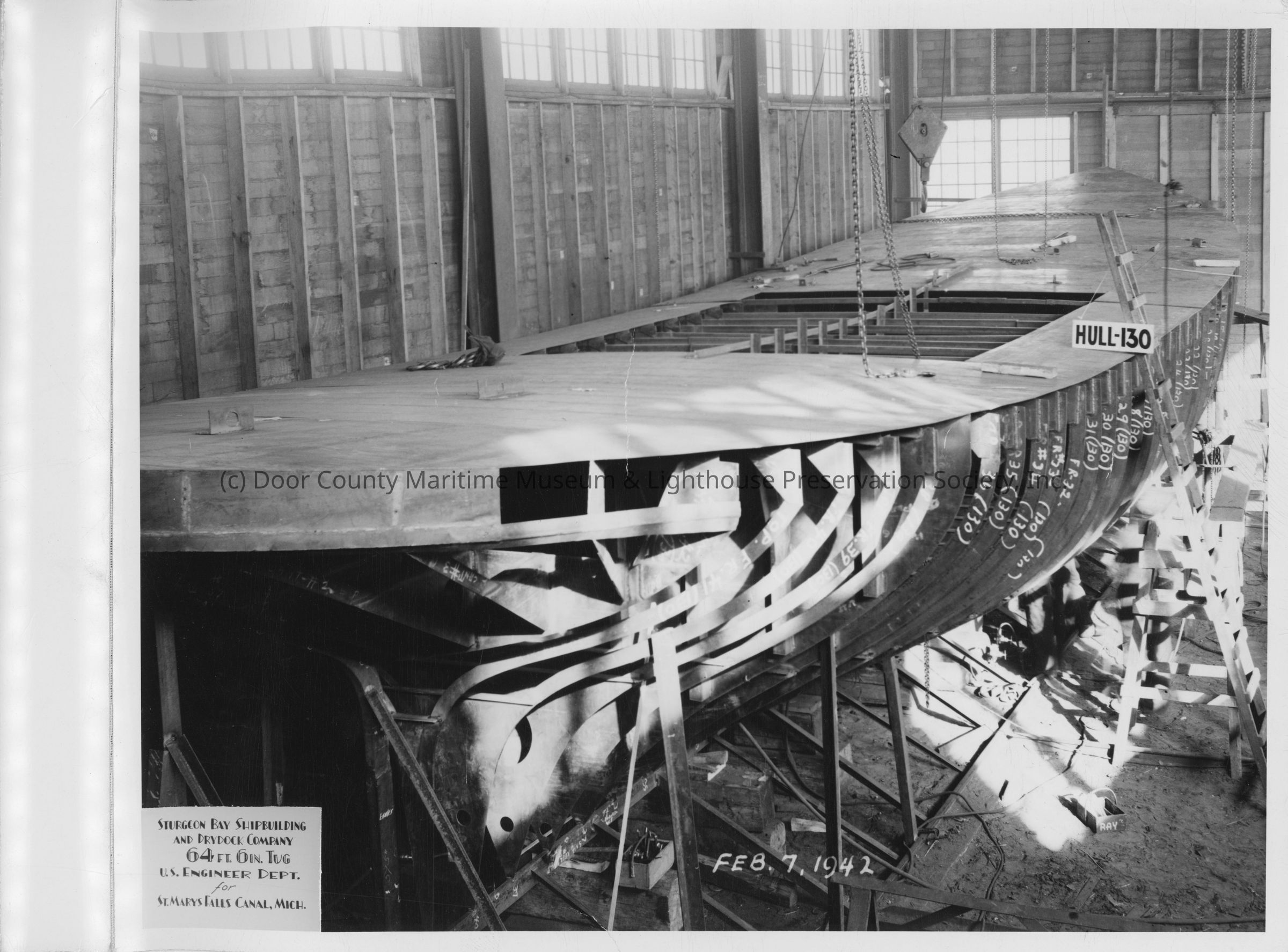 Hull 130 deck under construction at Sturgeon Bay Shipbuilding and Drydock Co. February 7, 1942Entry/Object ID