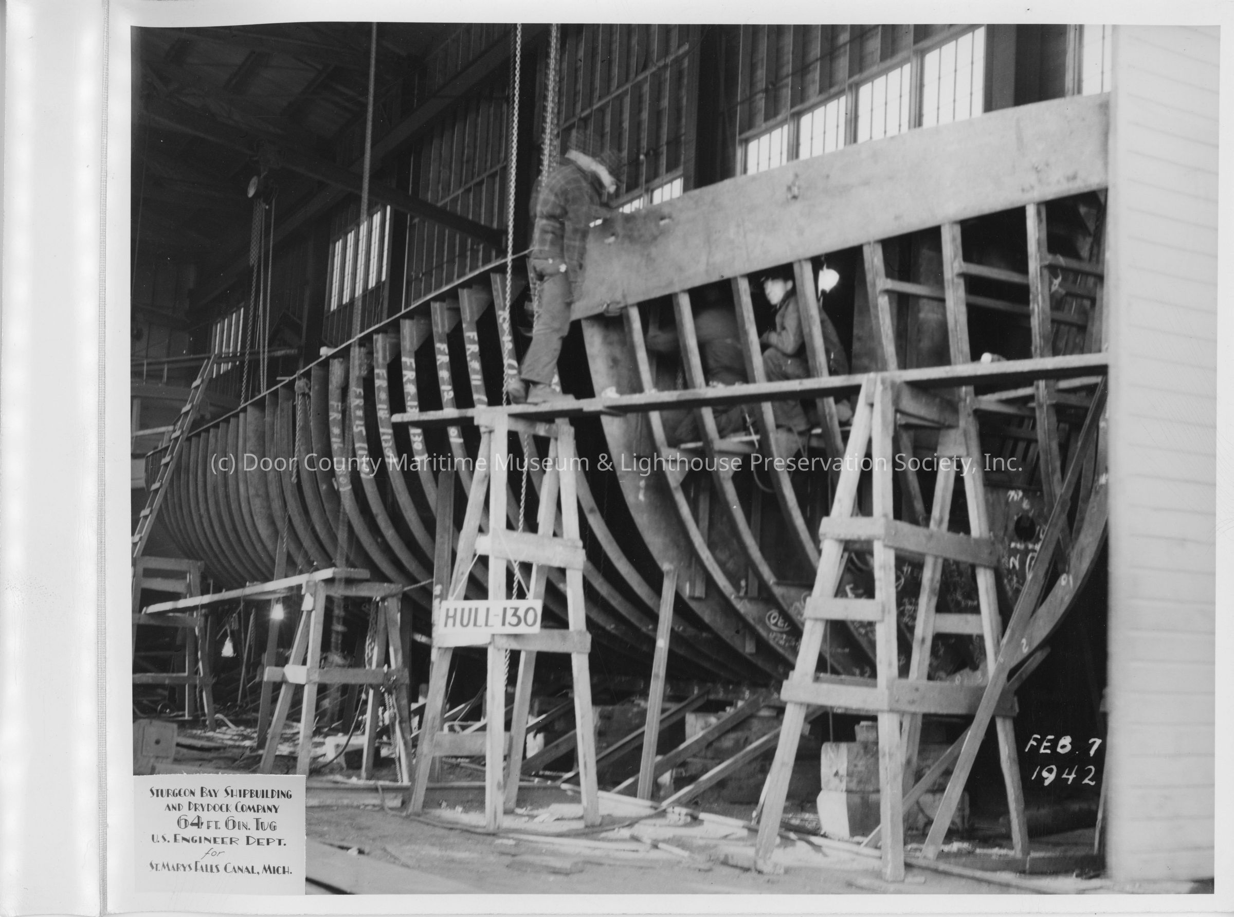 Hull 130 frame under construction at Sturgeon Bay Shipbuilding and Drydock Co. February 7, 1942Entry/Object ID