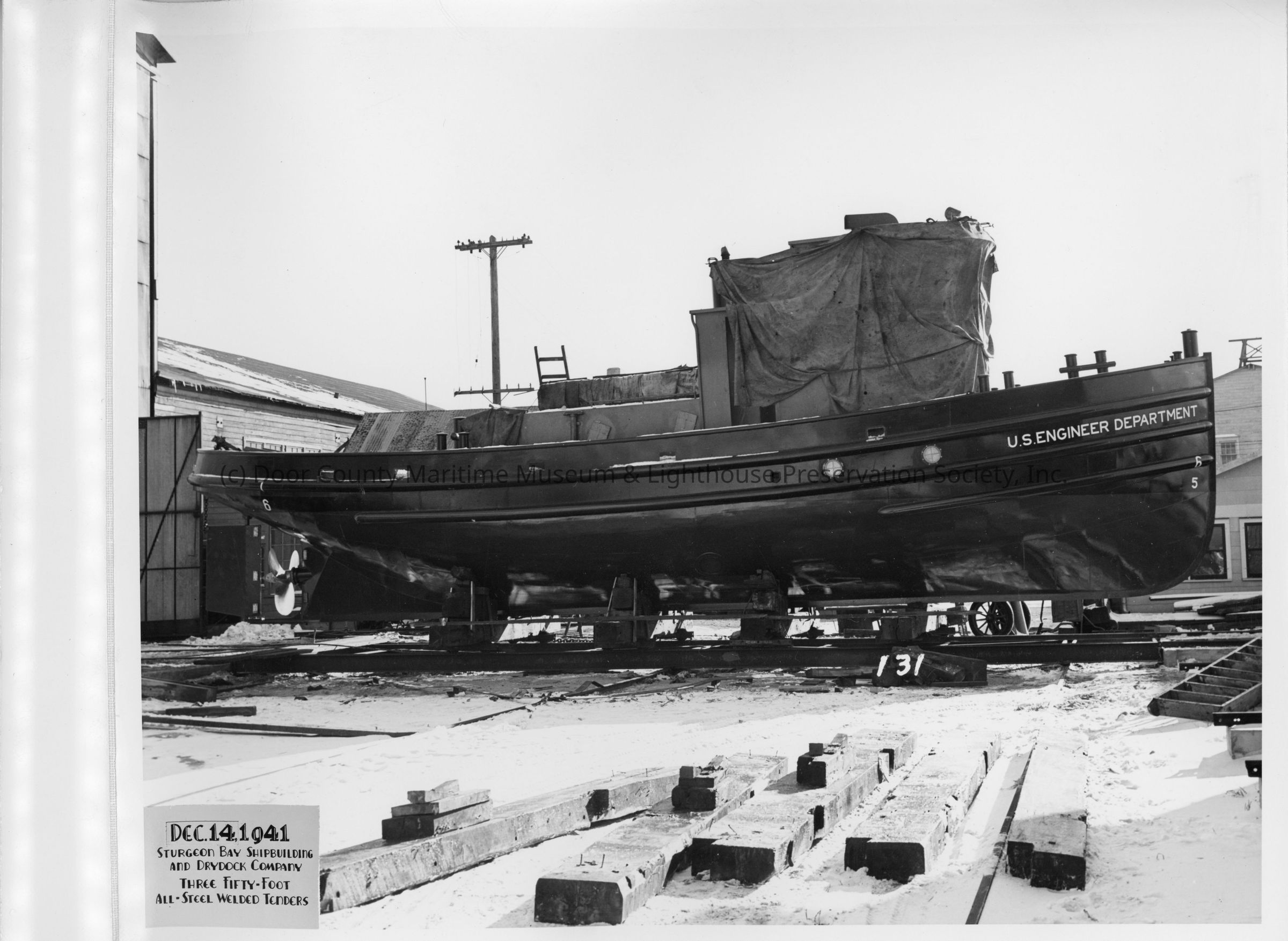 Hull 131 on cradle at Sturgeon Bay Shipbuilding and Drydock Co. December 14, 1941Entry/Object ID