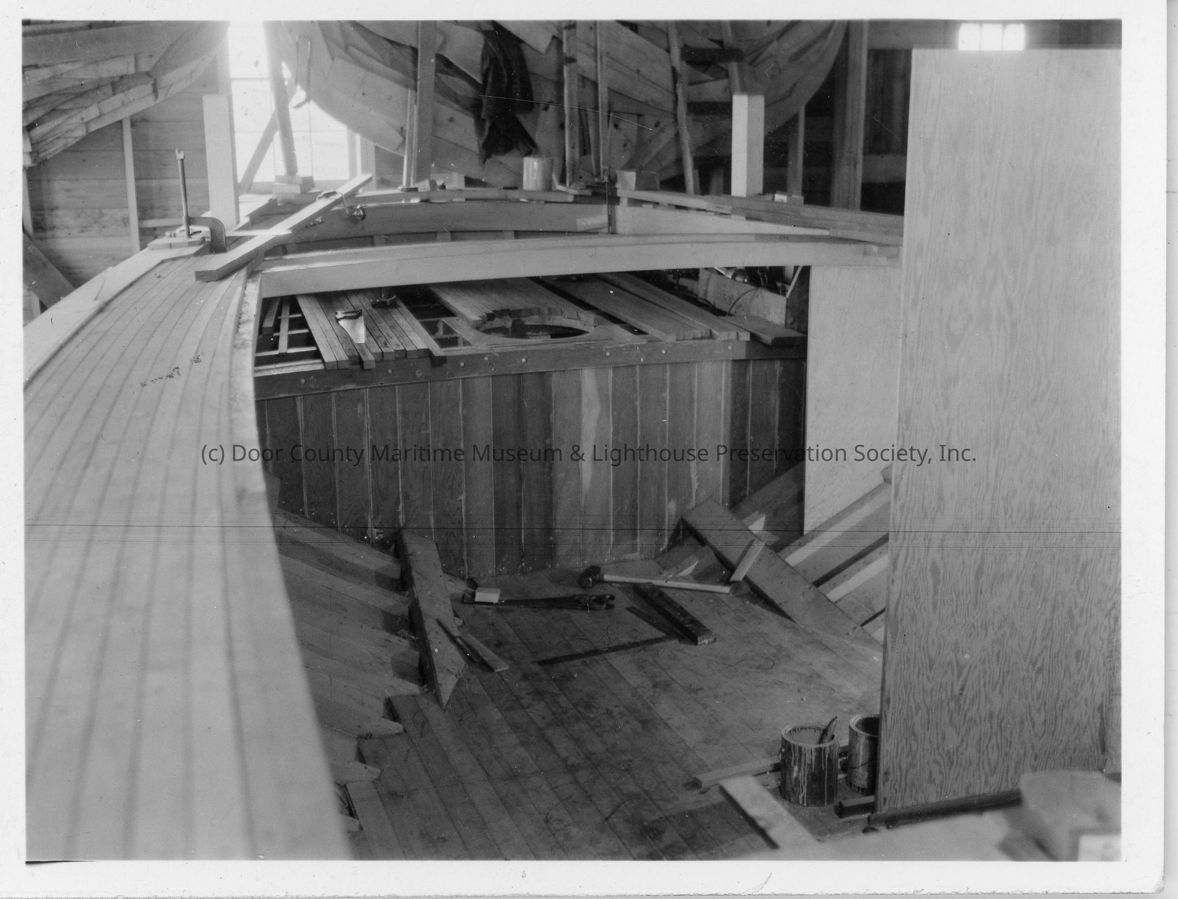 Interior of Donnelley under construction at Peterson Boat Works March 18, 1937