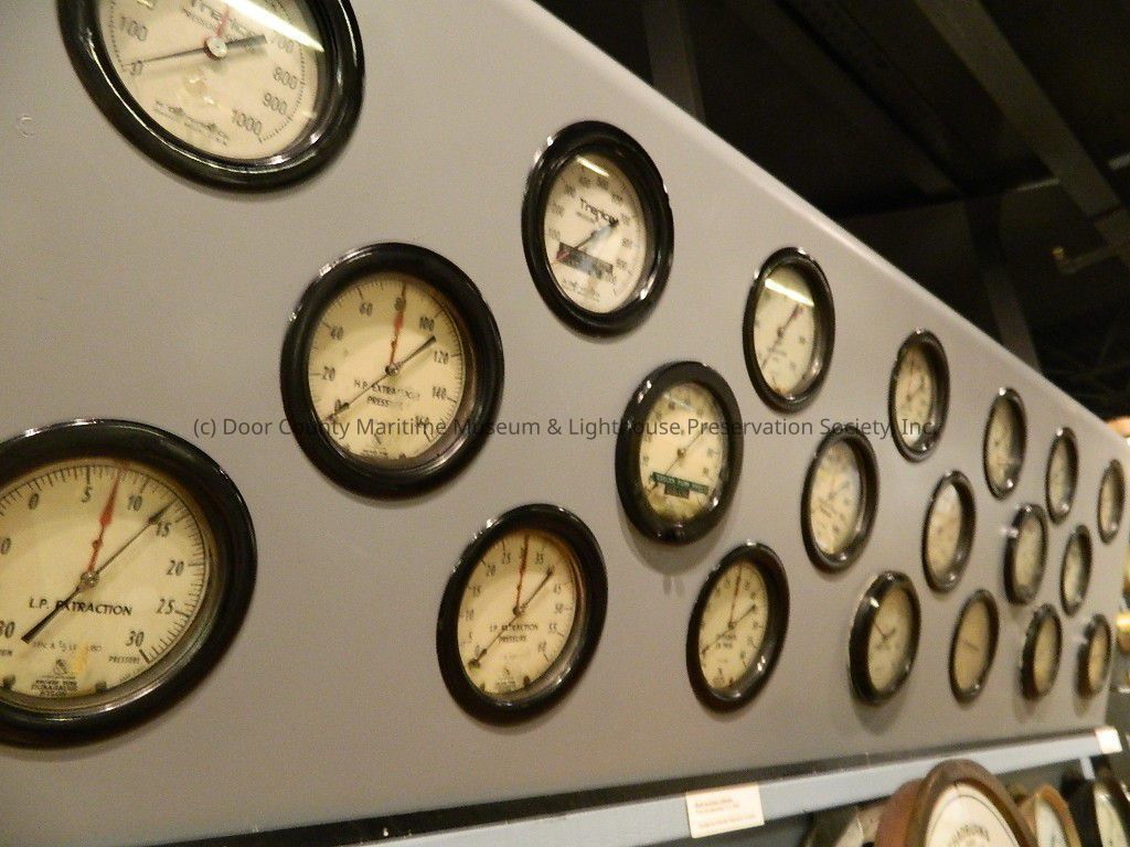 20 gauges; white faces with black lettering; glass protector and black painted metal frames; one black and one red arrow on each dialLocation