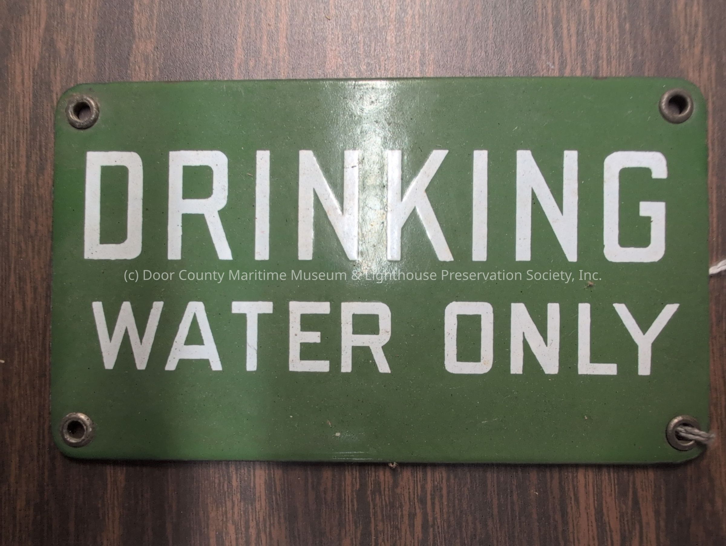 Metal nameplate with text "drinking water only"