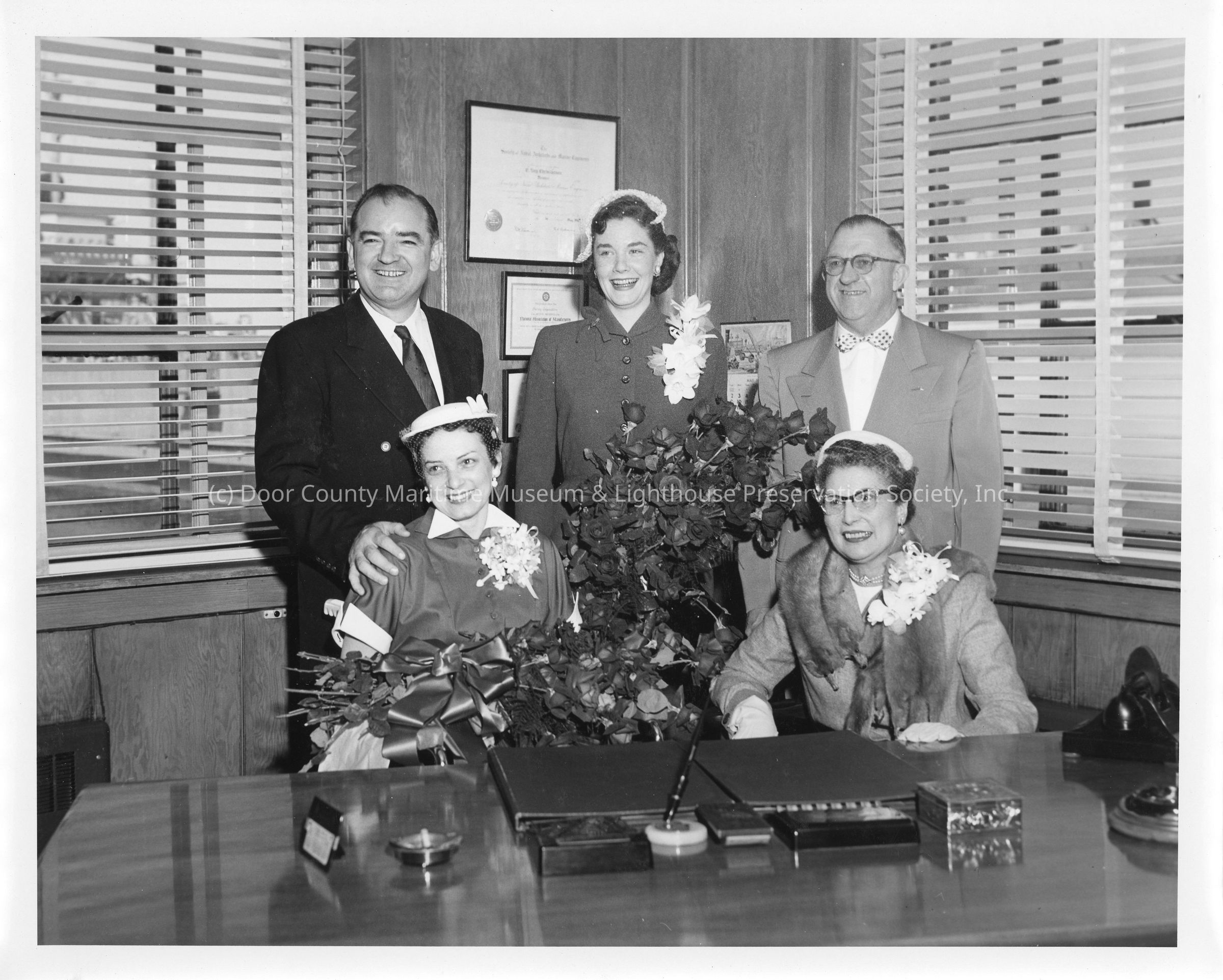 Joan and Joseph McCarthy, C. Ray and Myrtle Christianson, and Patricia VanRooy, at christening of LST-1170Entry/Object ID