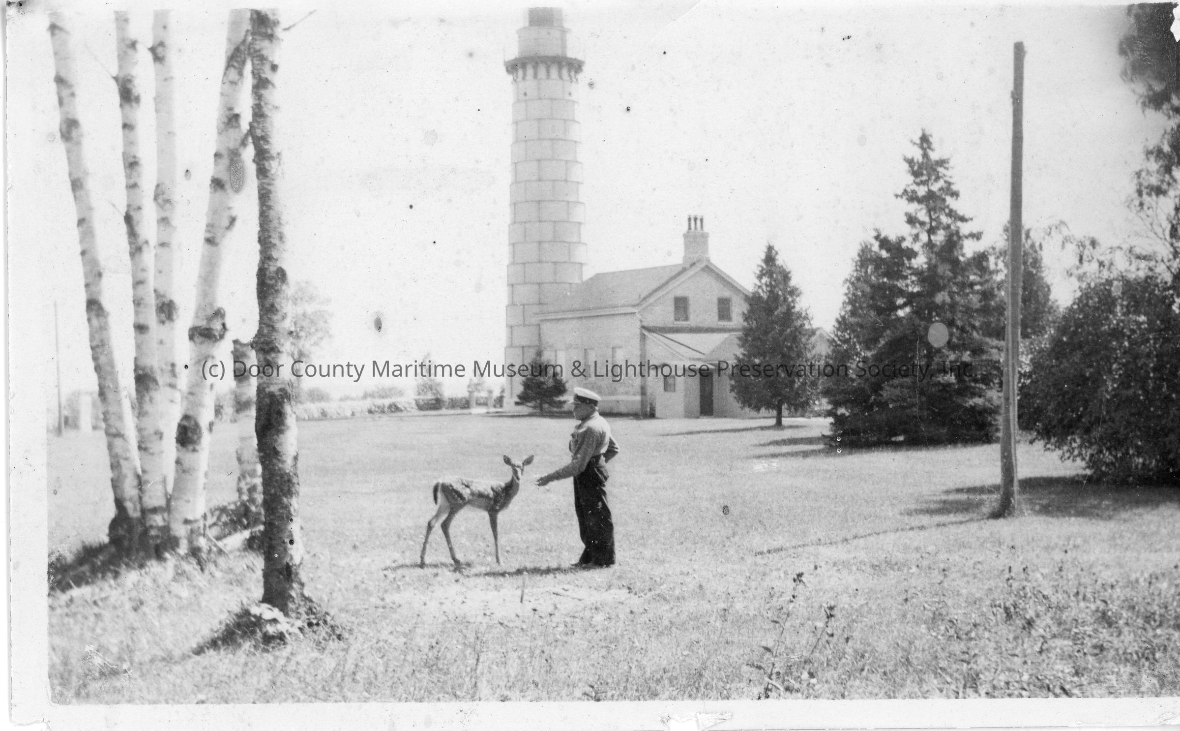 Keeper Ross Wright and deer at Cana Island Lighthouse