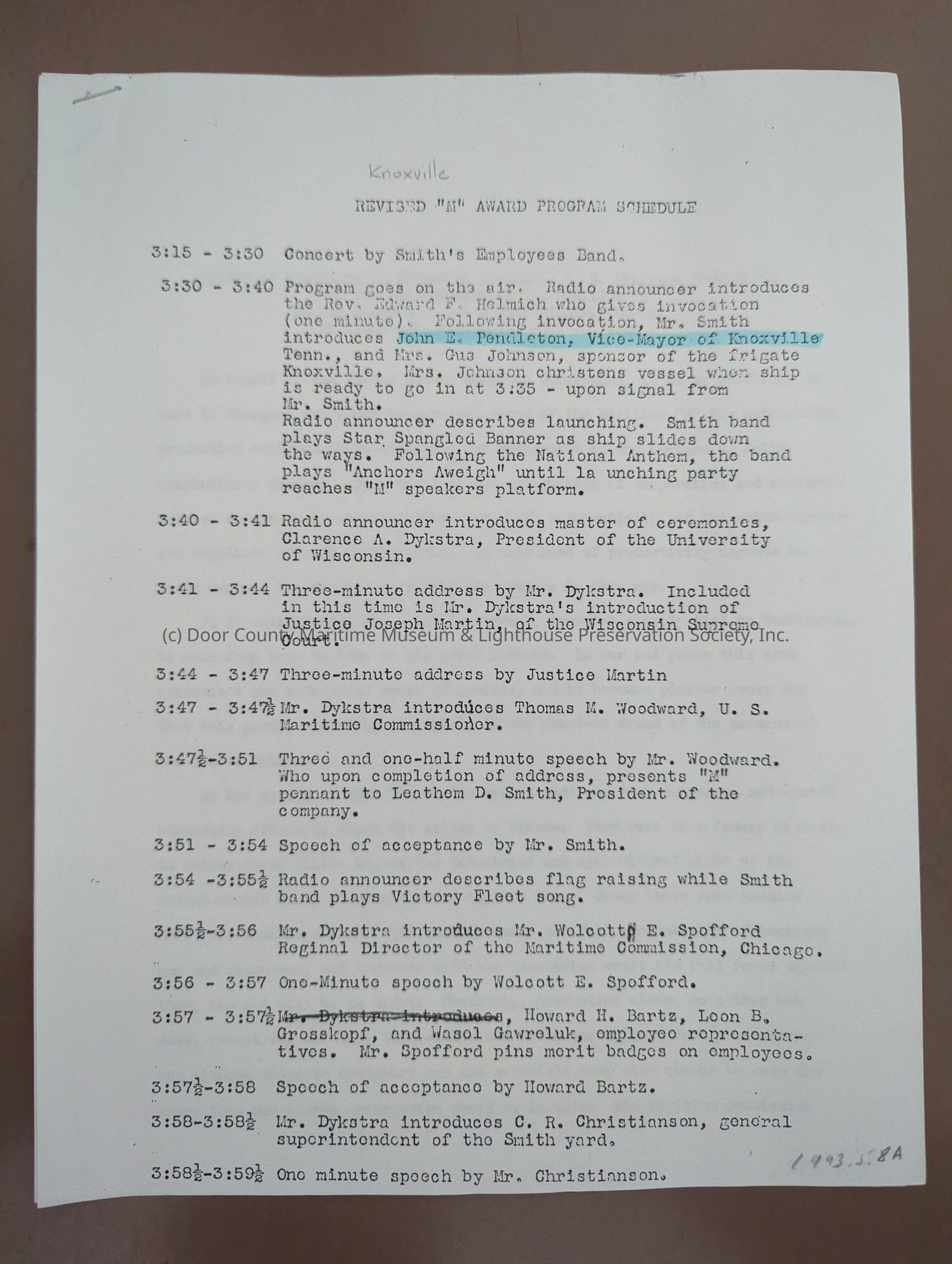 Knoxville M Award Program Schedule