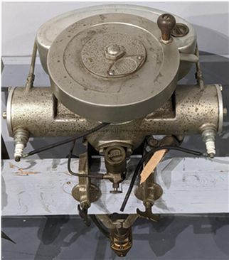 Silver metal outboard motor with broken wooden handle