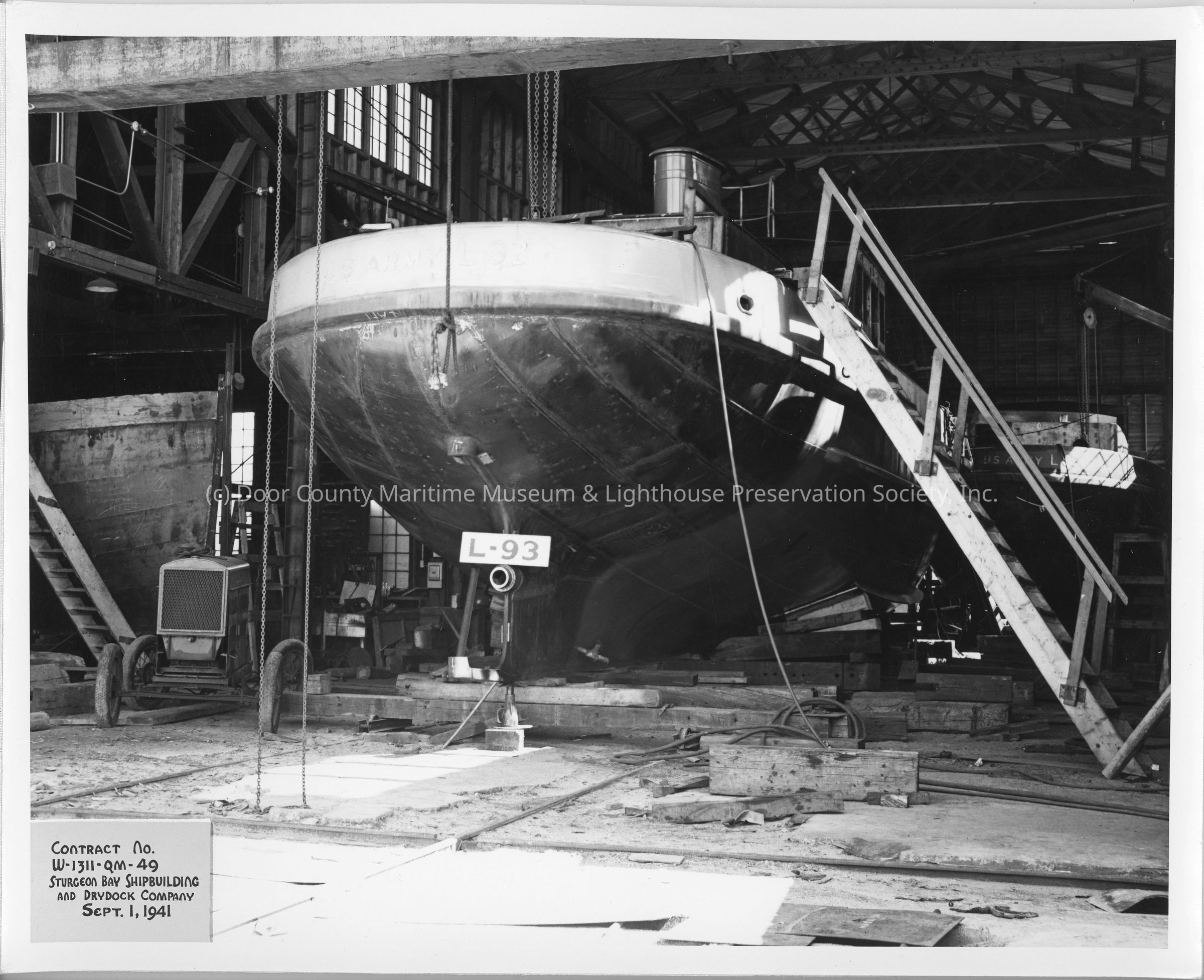 L-93 on cradles at sturgeon Bay Shipbuilding and Dry Dock Co. L-95 in backgroundLocation
