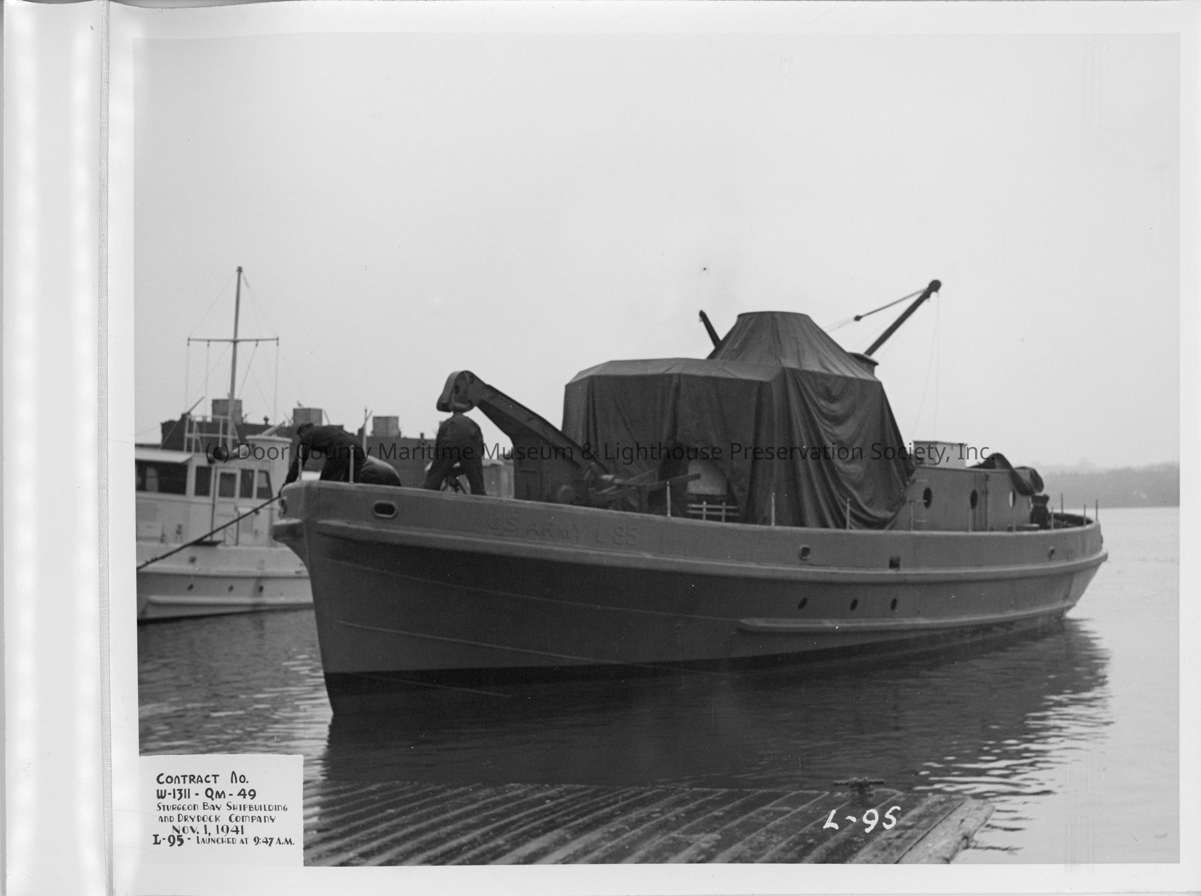 L-95 being towed post-launch at Sturgeon Bay Shipbuilding and Drydock Co. November 1, 1941Entry/Object ID