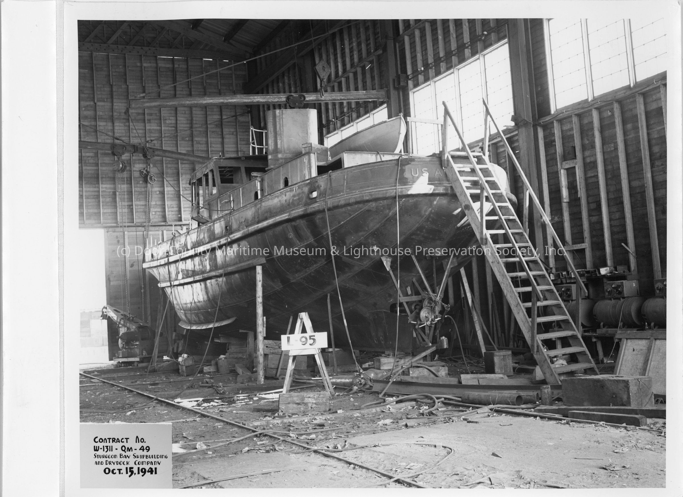 L-95 Hull and Pilothouse under construction at Sturgeon Bay Shipbuilding and Drydock Co. October 15, 1941Entry/Object ID