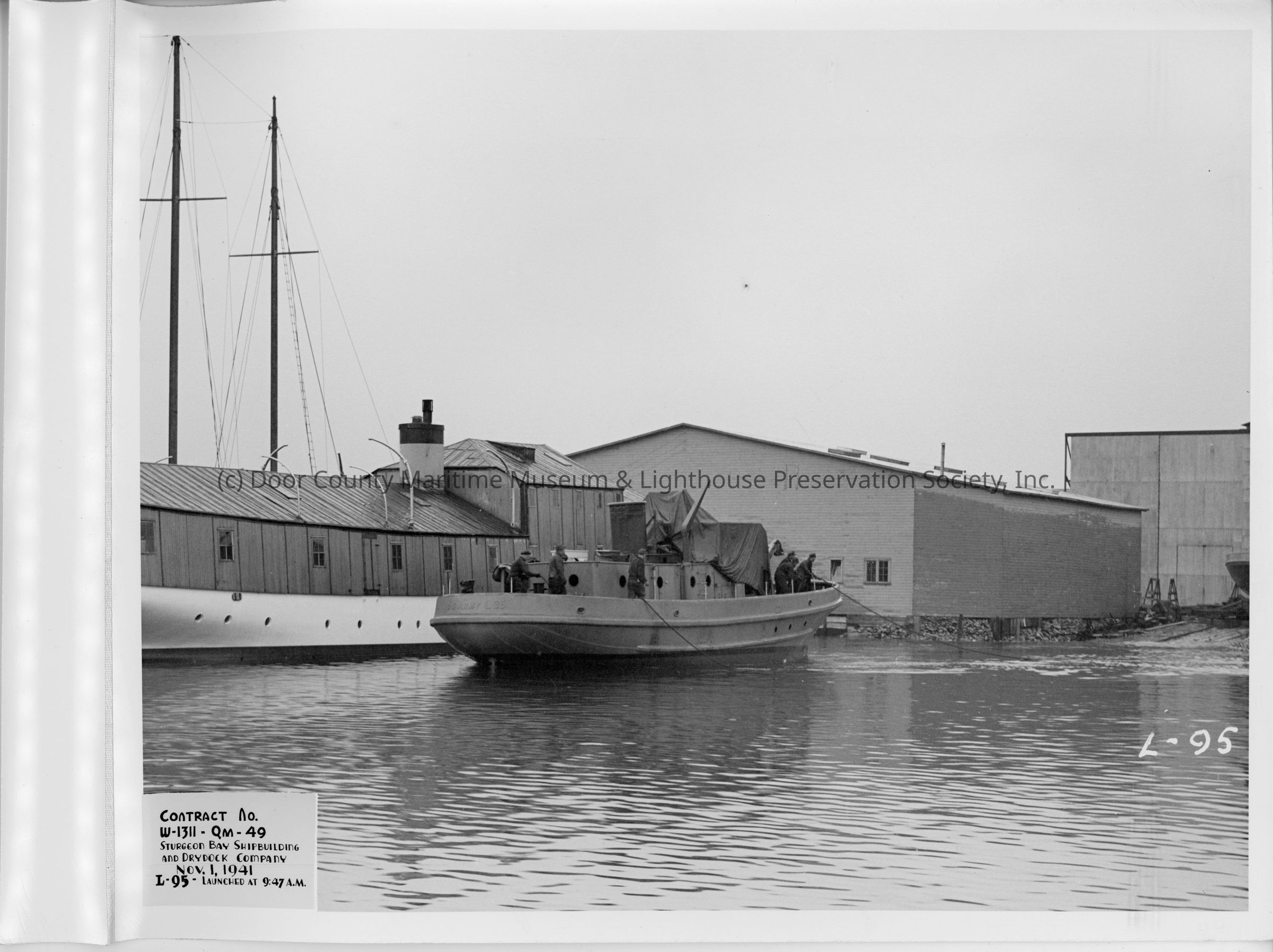 L-95 in water post-launch at Sturgeon Bay Shipbuilding and Drydock Co. November 1, 1941Entry/Object ID