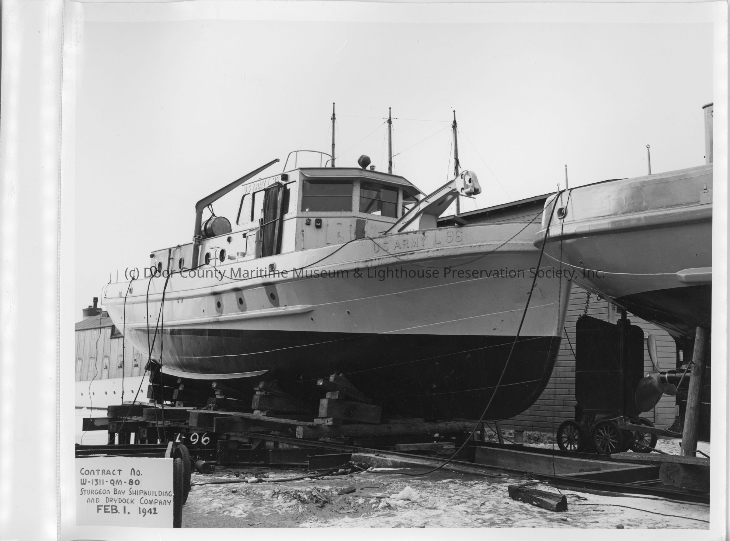L-96 on cradle at Sturgeon Bay Shipbuilding and Drydock Co. February 1, 1941Entry/Object ID