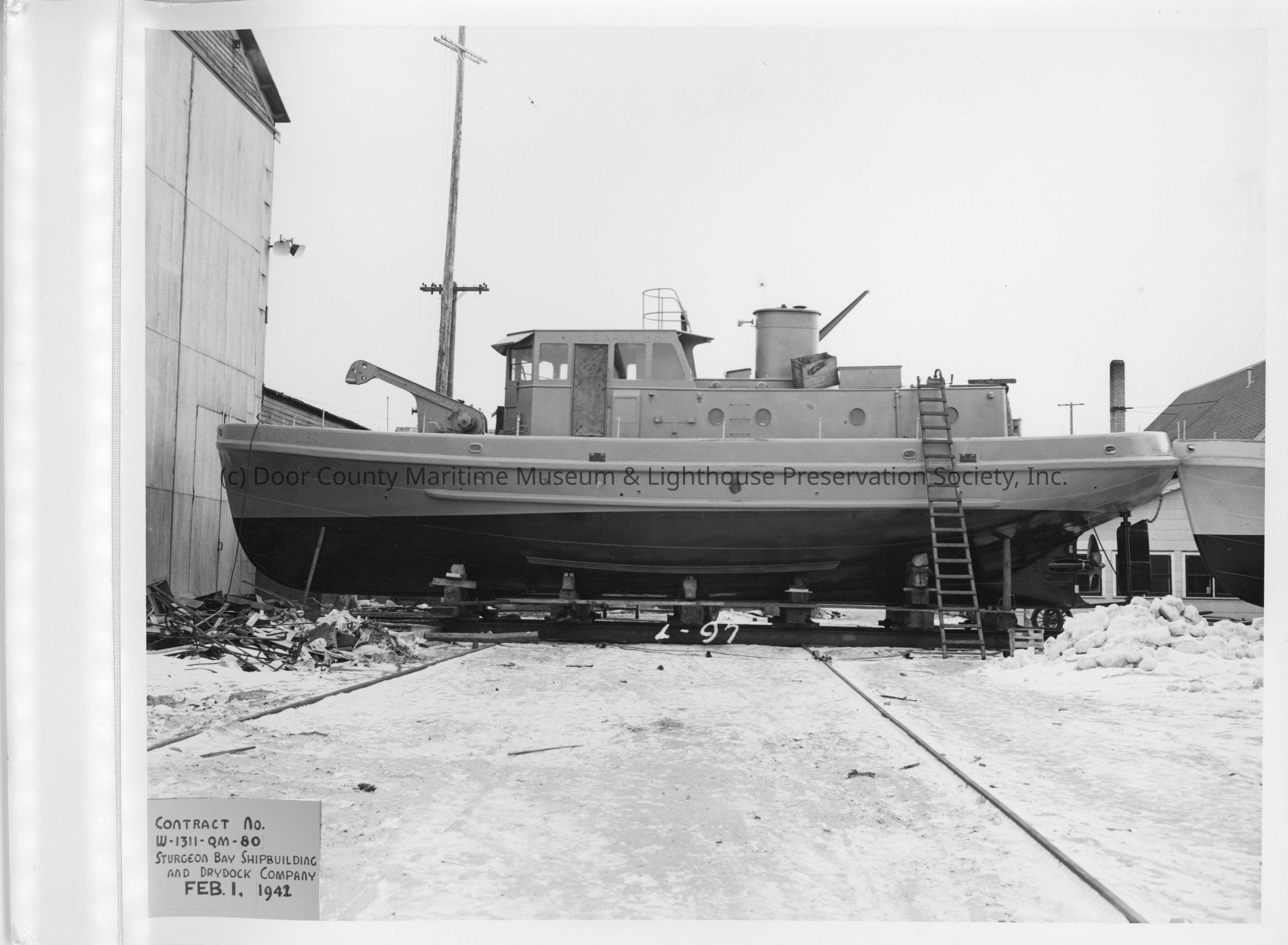 L-97 Distribution Box Boat on cradle at Sturgeon Bay Shipbuilding and Dry Dock Co. February 1, 1942Entry/Object ID