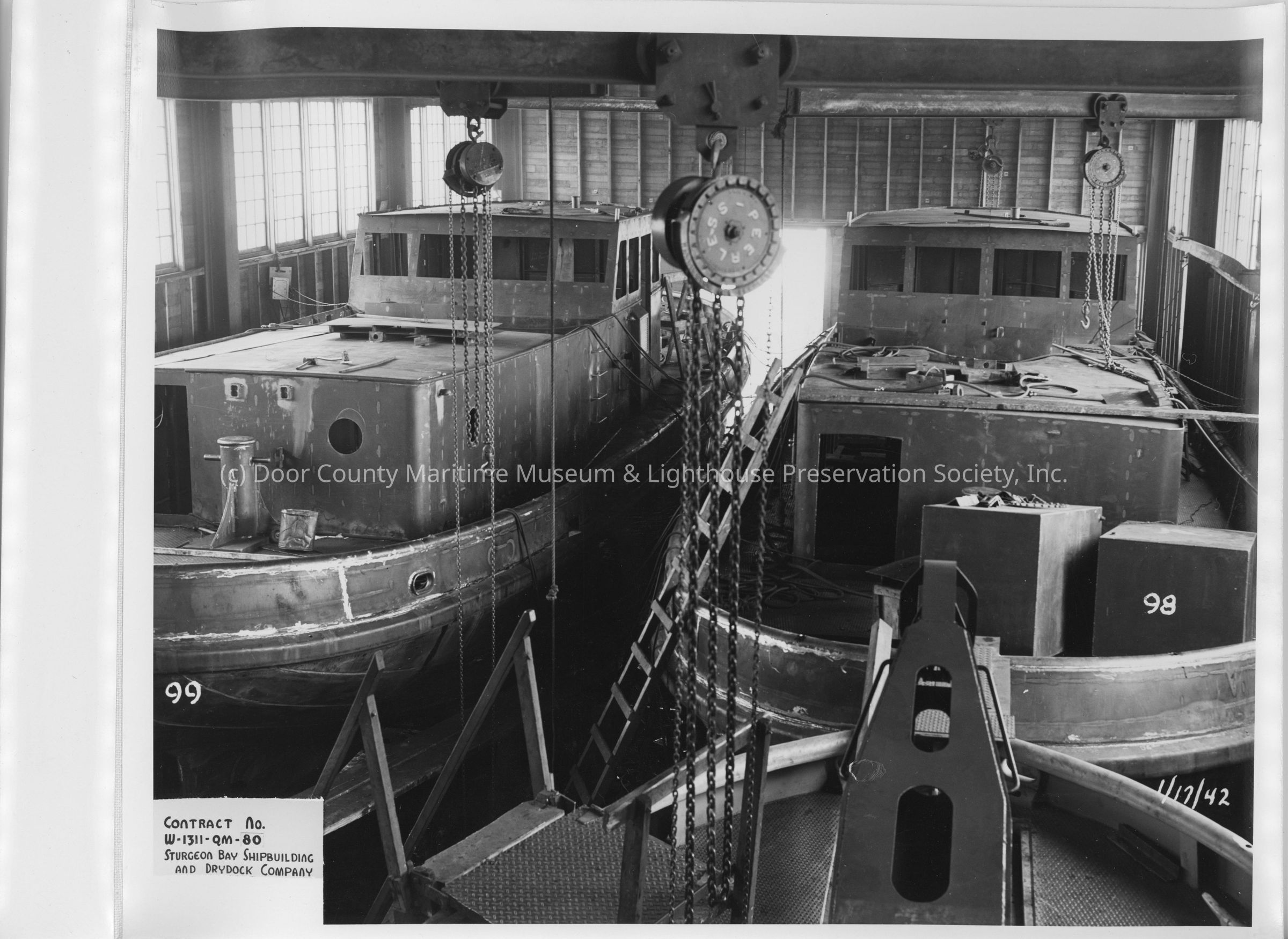 L-98 and L-99 under construction at Sturgeon Bay Shipbuilding and Drydock Co. January 17, 1942Entry/Object ID