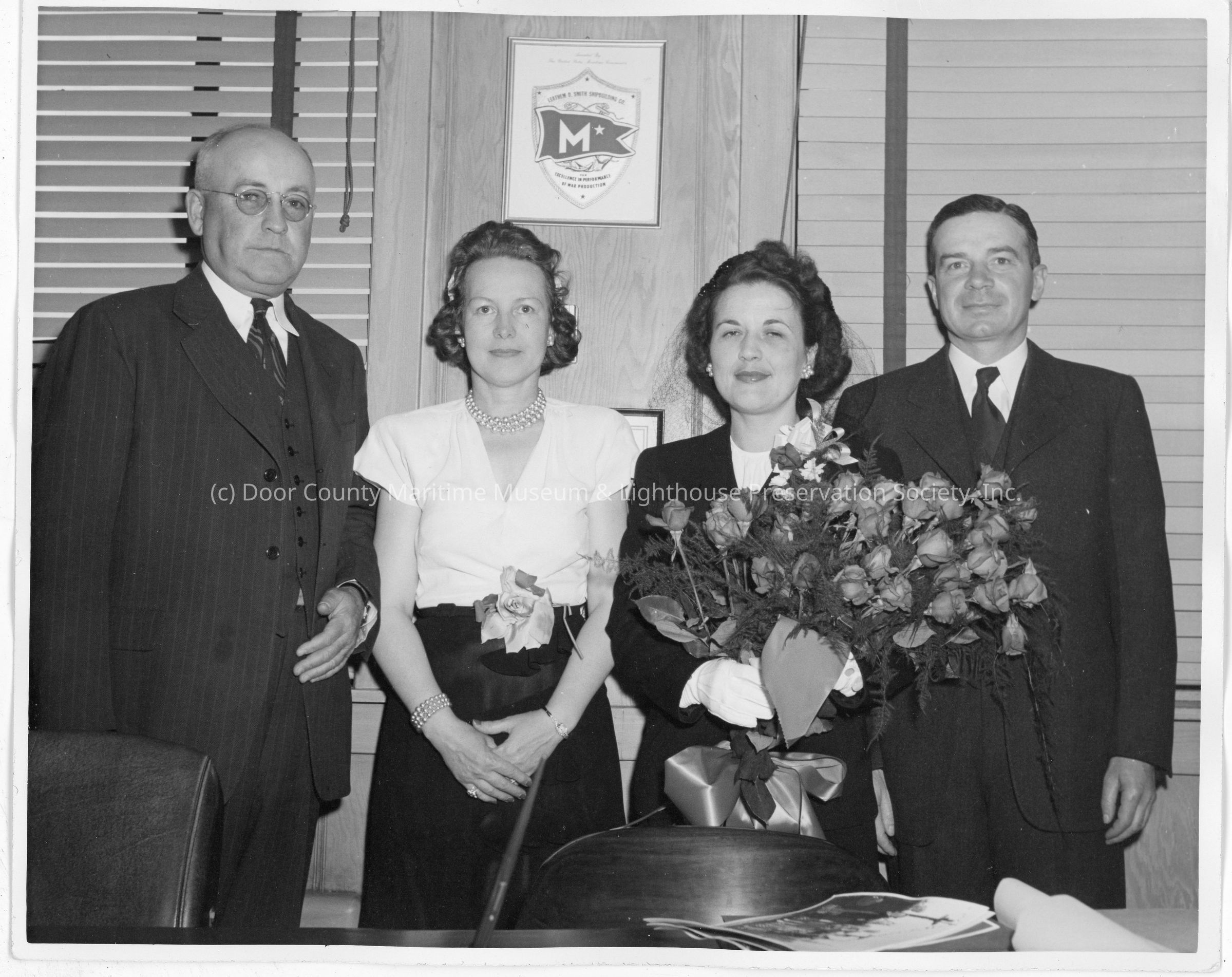 L.D. Smith and Alva Smith with ship sponsor at YW-129 christeningEntry/Object ID
