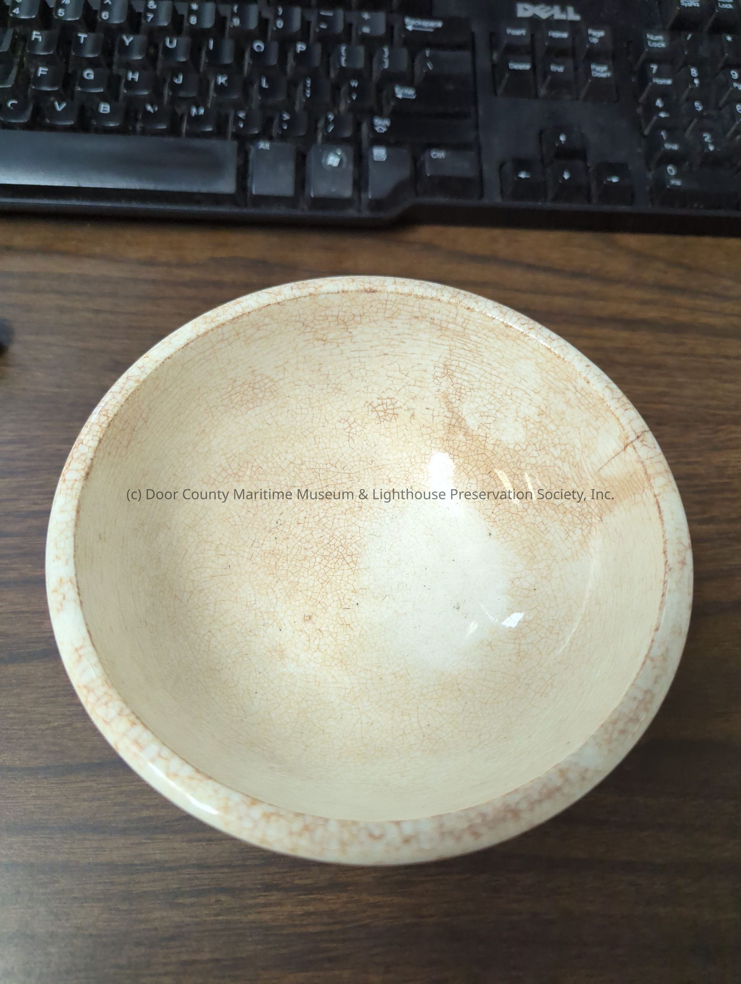 White ceramic bowl with brown cracks