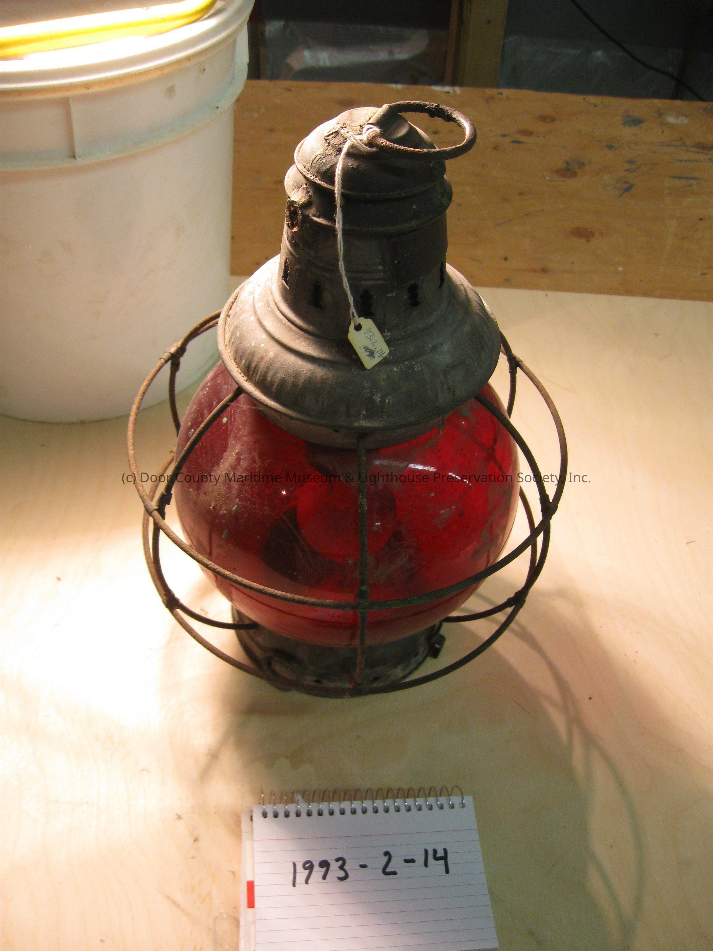 Tin lamp 360 degree red lens. Light bulb installed.