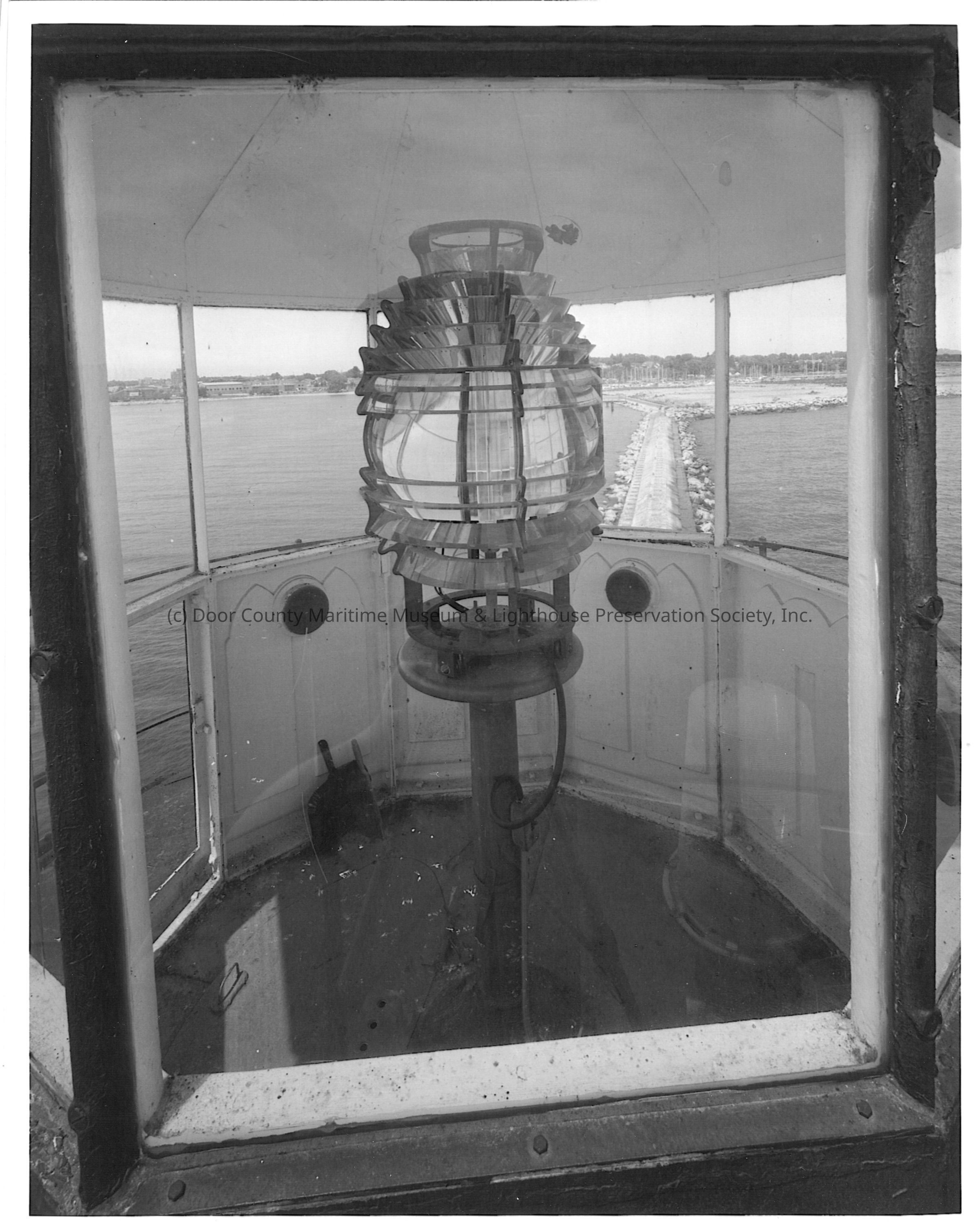 Lantern room and Fresnel lens at Manitowoc Pierhead light 2002