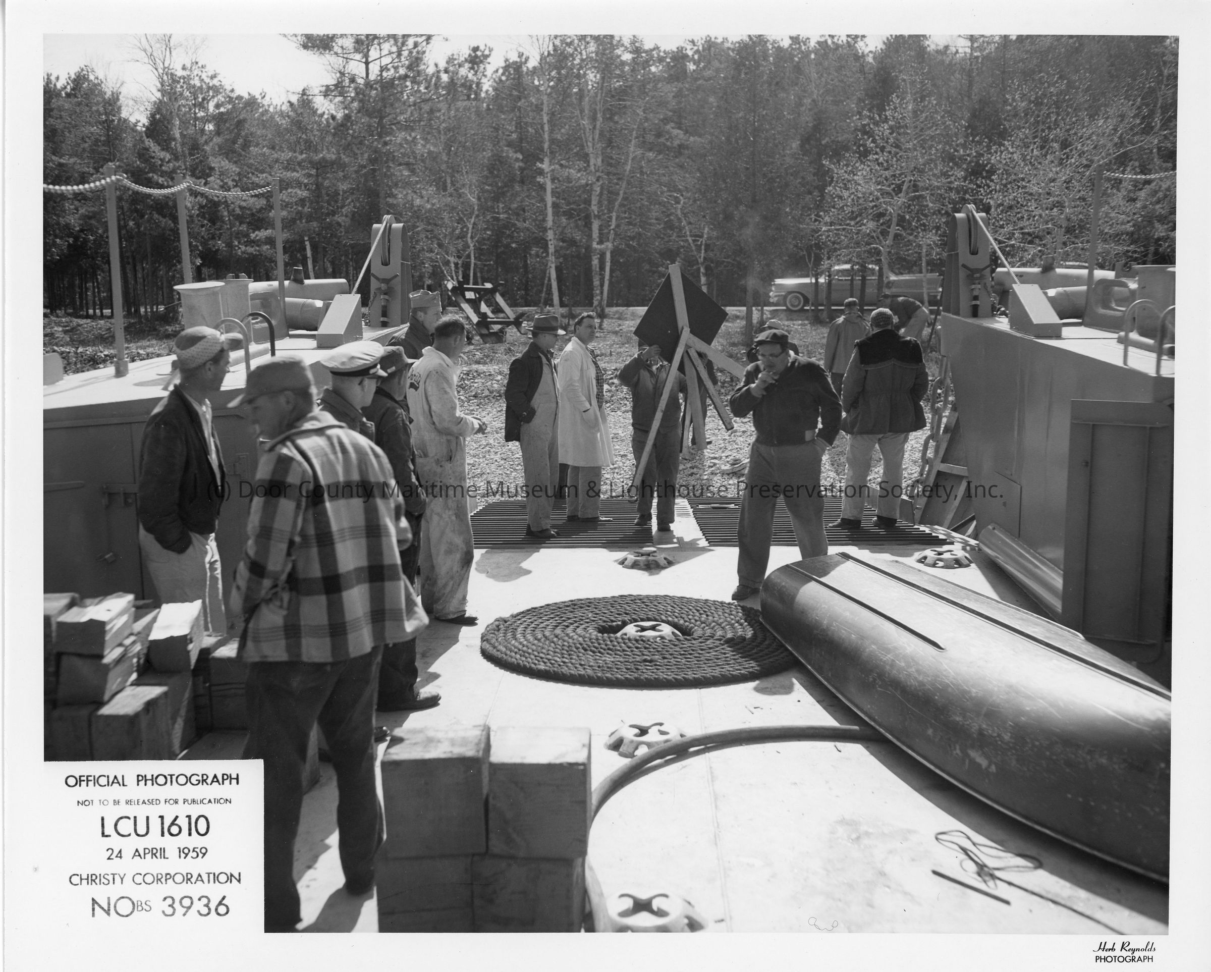 LCU-1610 at shore with people standing on deck April 24, 1959Entry/Object ID