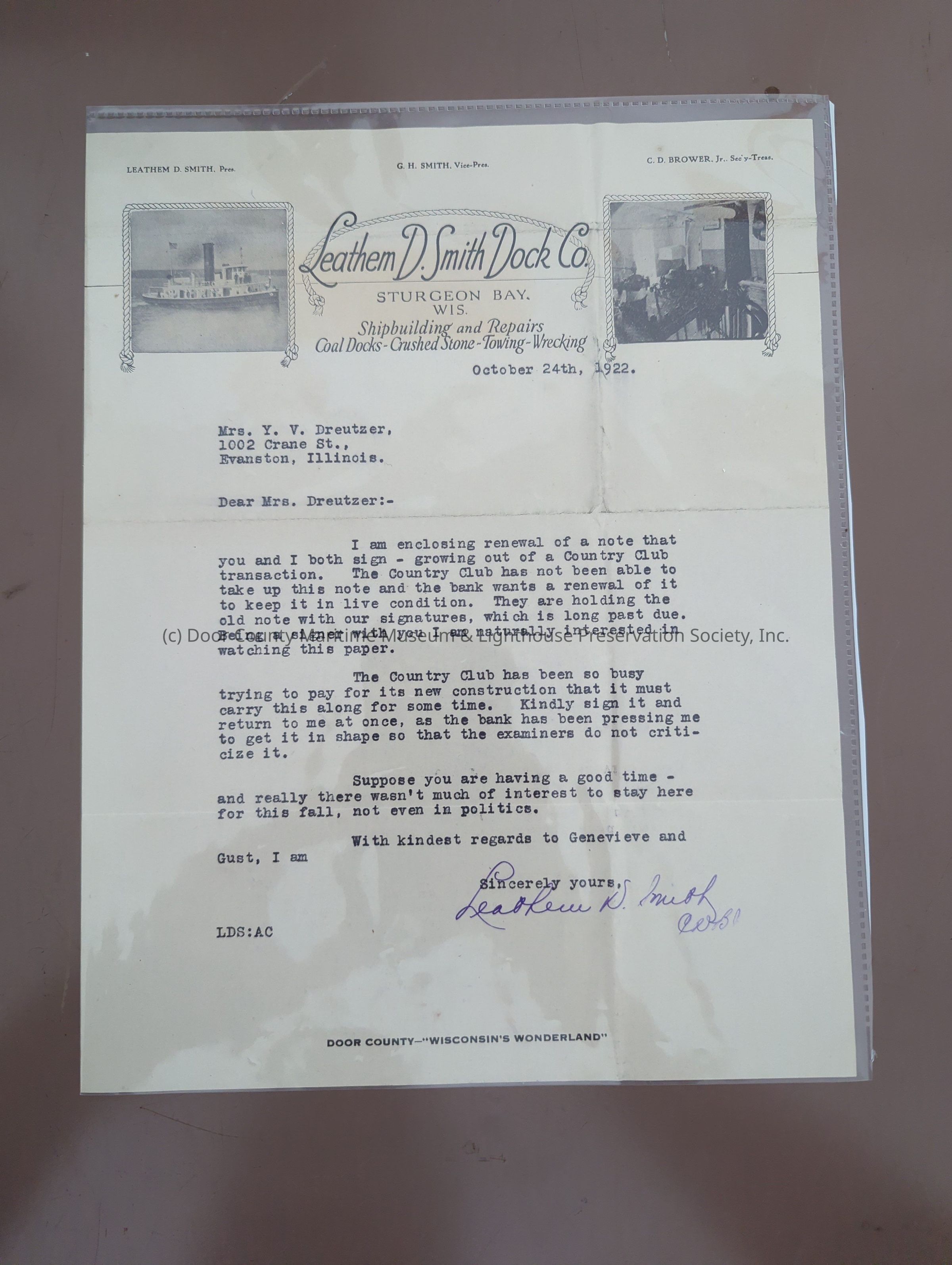 Leathem d. Smith dock Co. Letter