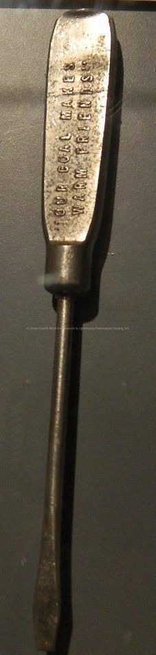 Silver metal screwdriver: on one side of handle "Leathem D. Smith Dock Co. phone 87"; on other side of handle "Our Coal Makes Warm Friends."Location