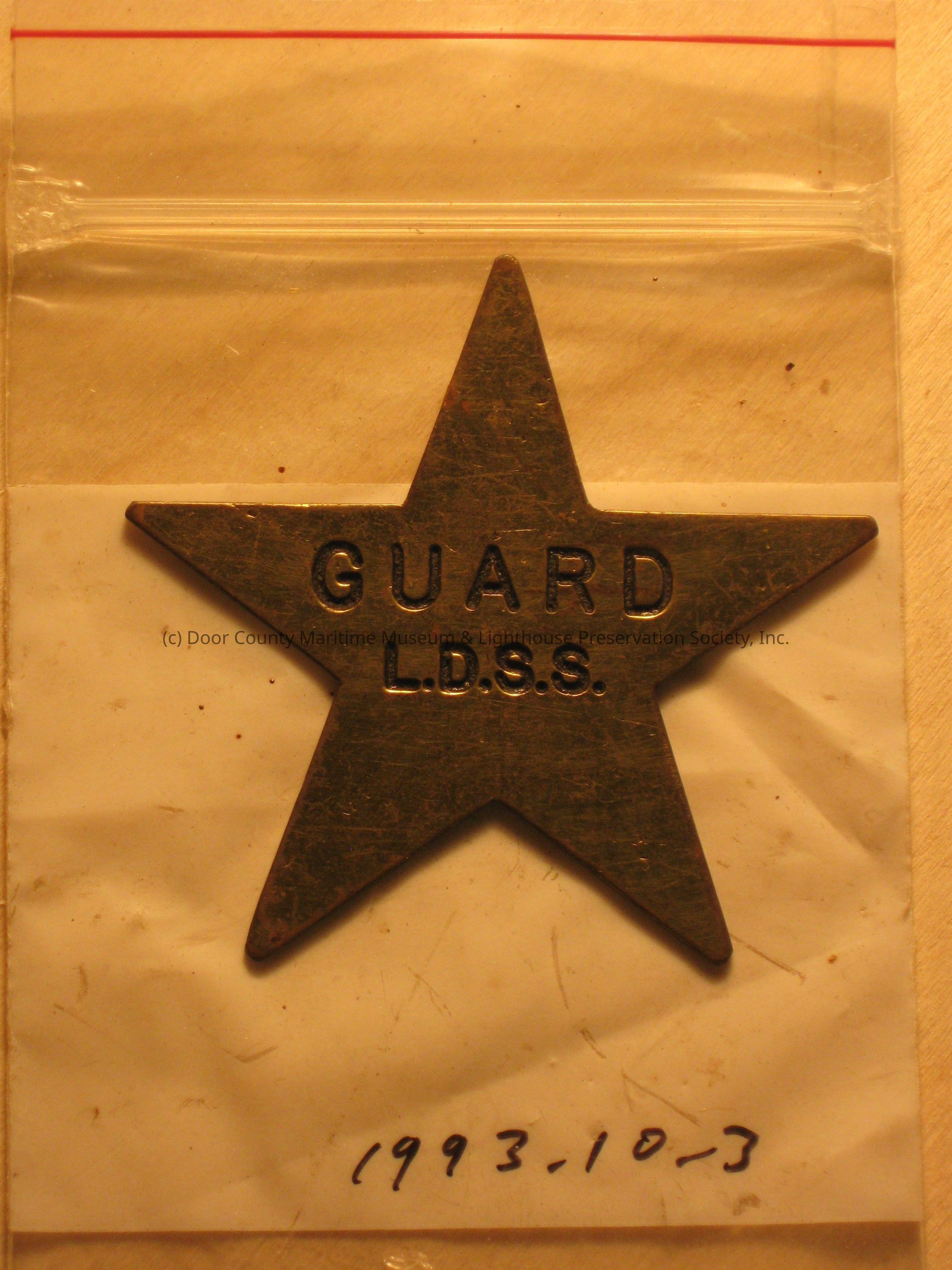 Overall color / polished brass / gold Black depressed "Guard" "L.D.S.S."