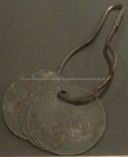 Five gray metal circles together on clip; initials L.D.S.S. Co. #519 (faded red)Location