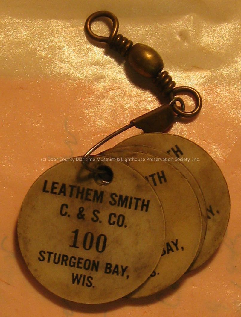 White plastic disk with Leathem Smith C&S CO. "100" Sturgeon Bay, Wis.