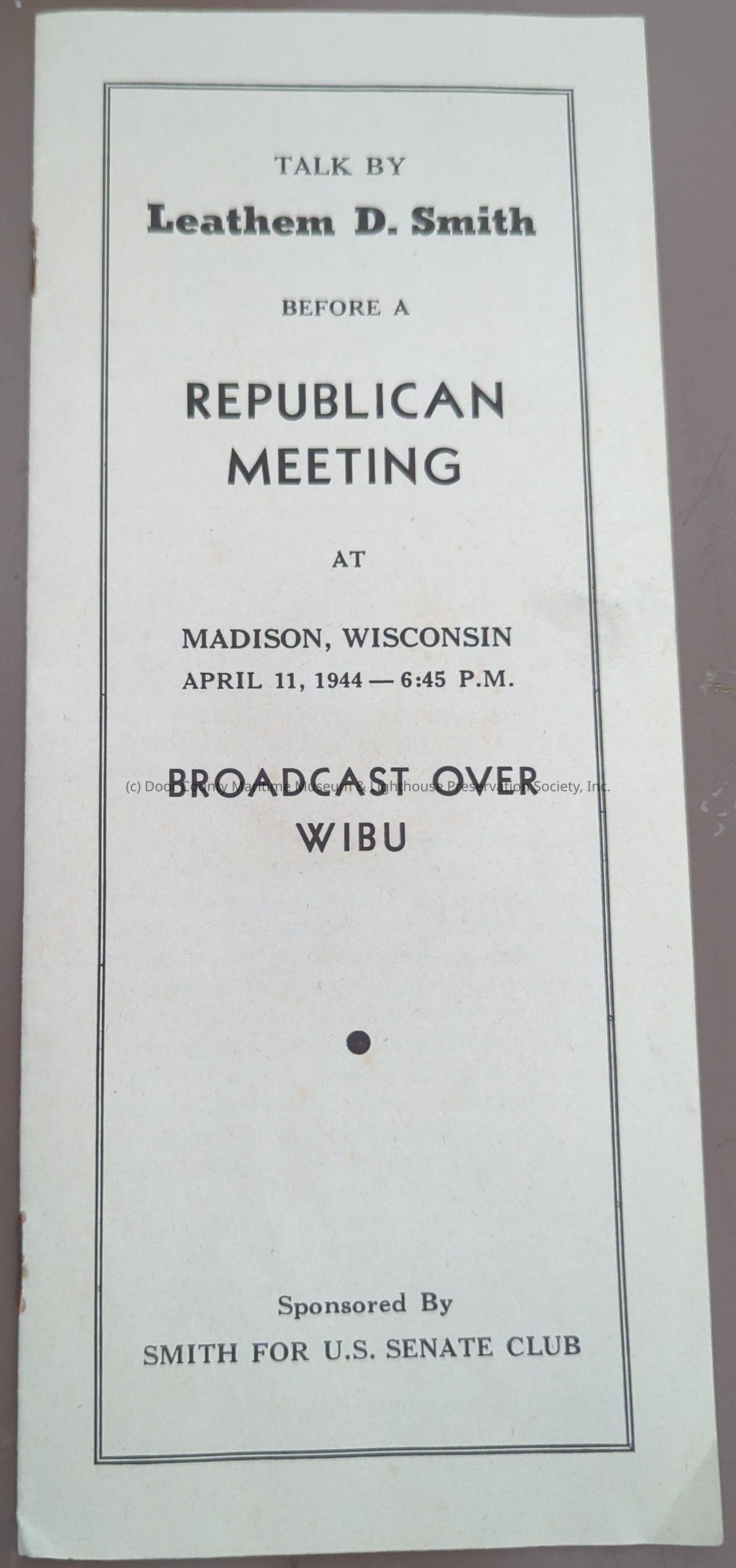 Leathem Smith for Senator speech brochure