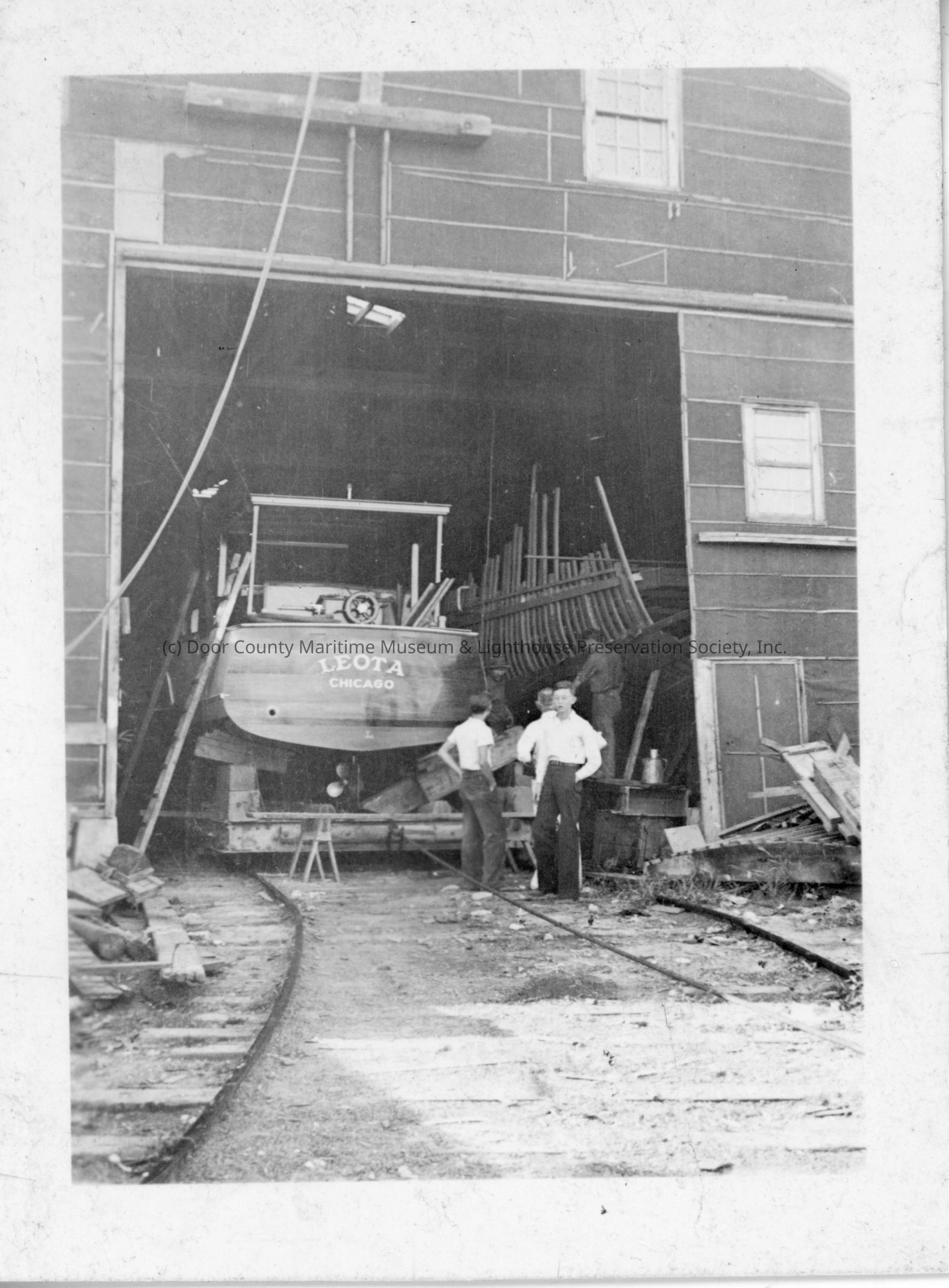 Leota under construction inside of Peterson Boat Works 1935