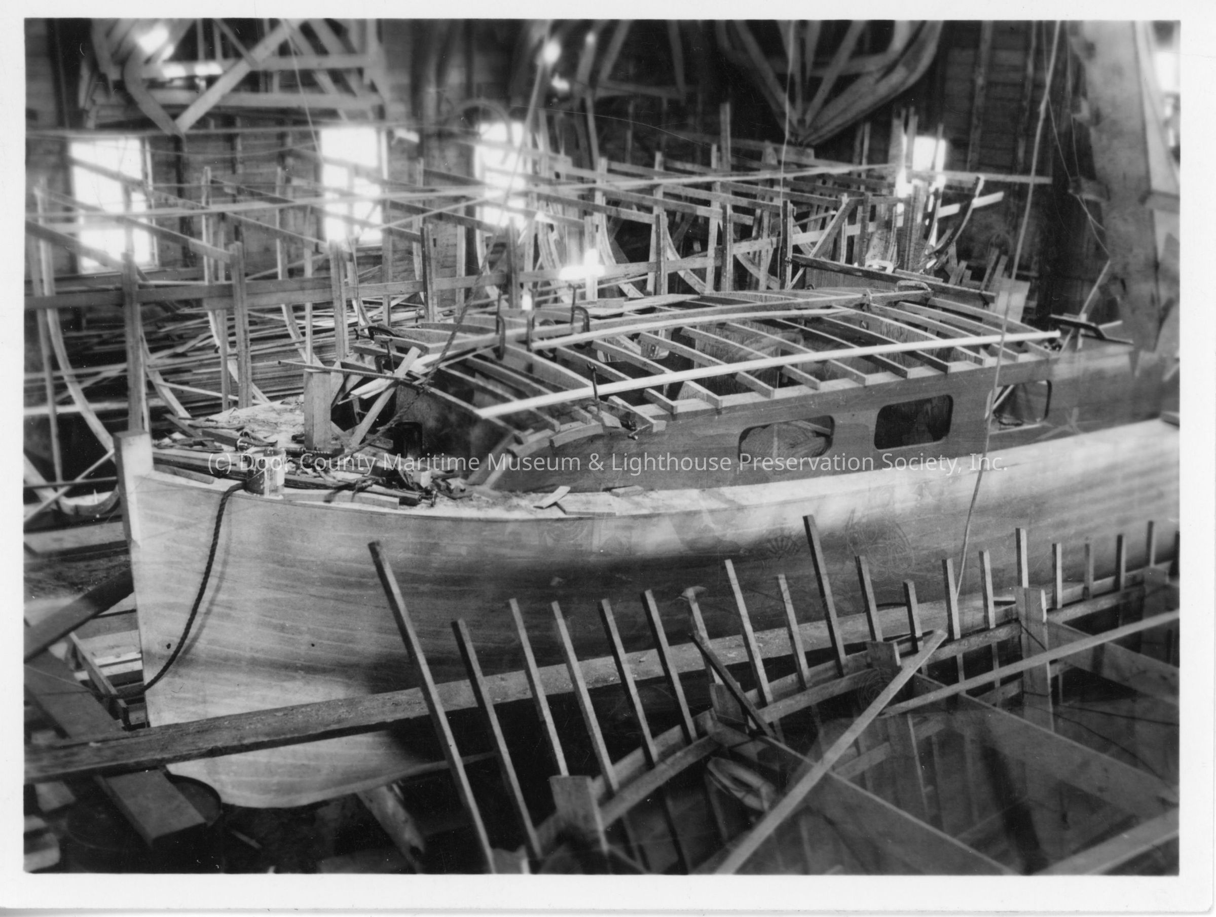 Leota under construction inside of Peterson Boat Works 1935